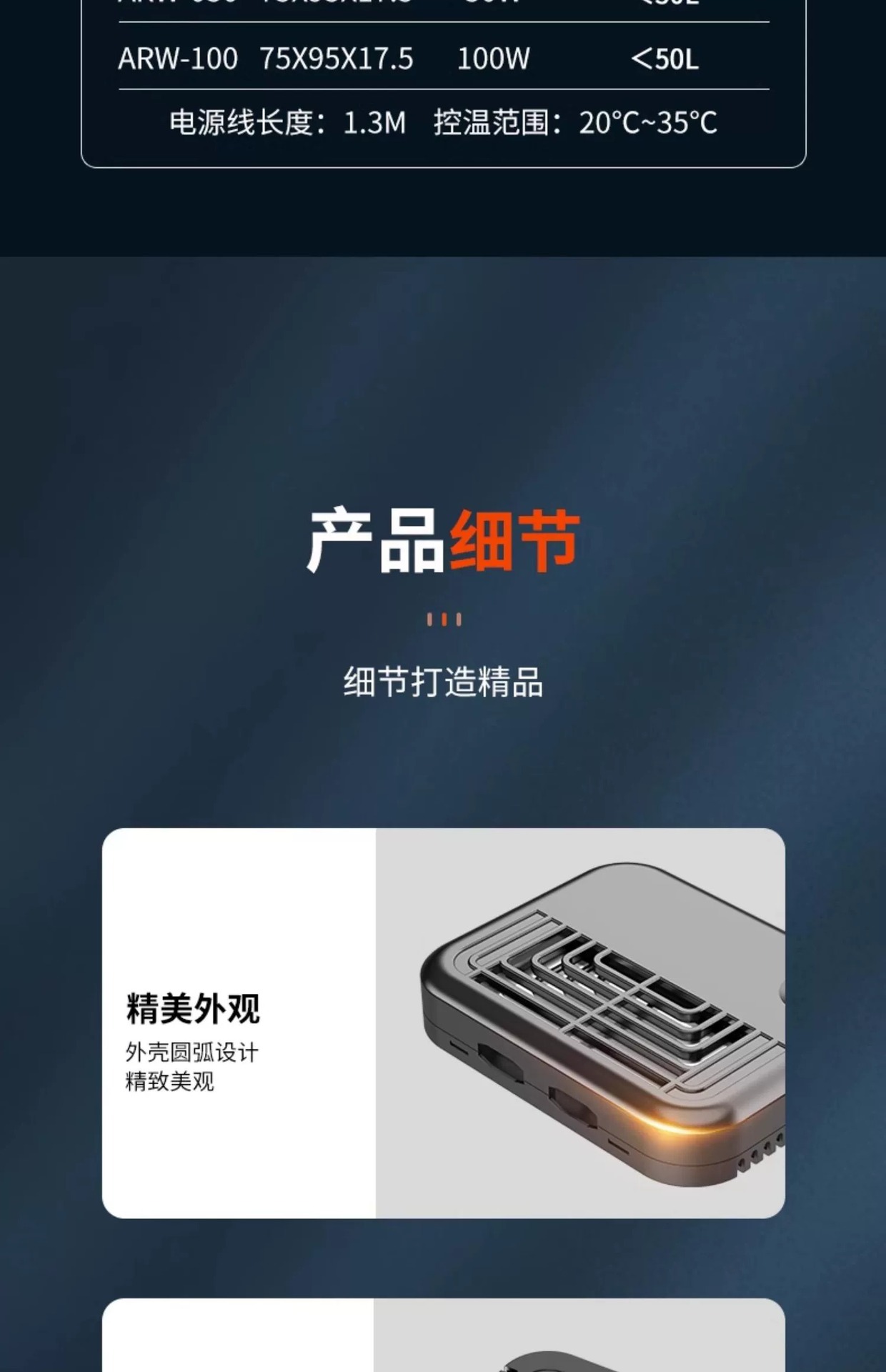 • 50W 초박형 가열봉 [물과 전원을 차단하는 것이 더 안전합니다]