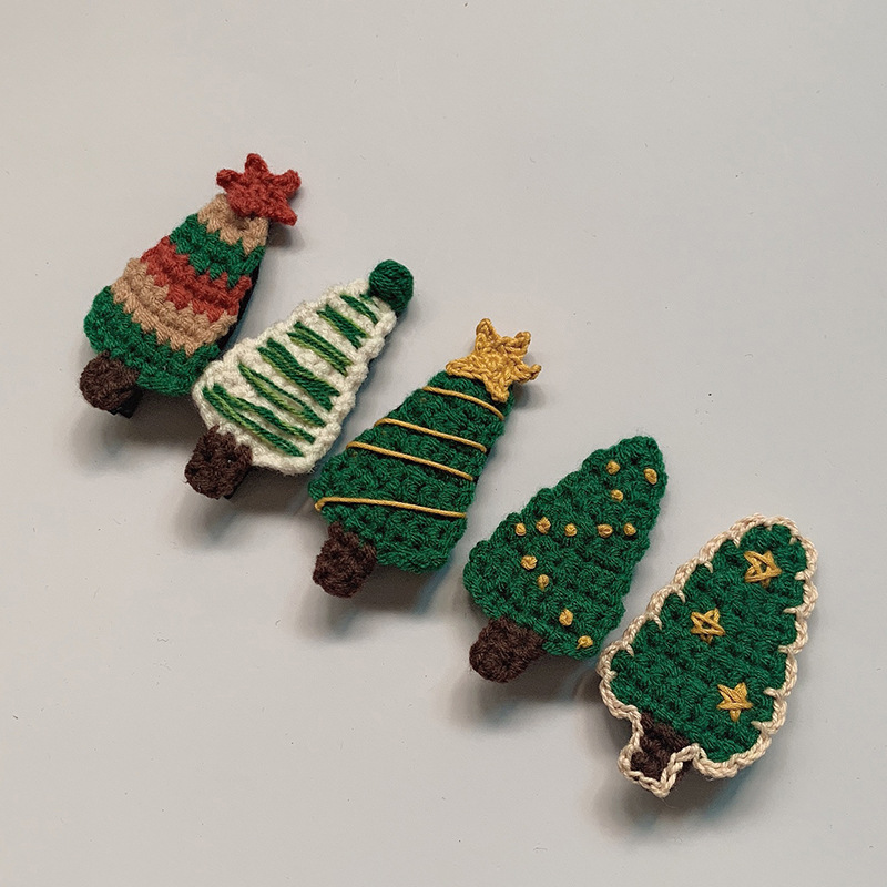 2024 새로운 빈티지 크리스마스 트리 헤어핀 손 자수 울 헤어 액세서리 작은 빨간 책 추천 깨진 헤어핀 사이드 클립