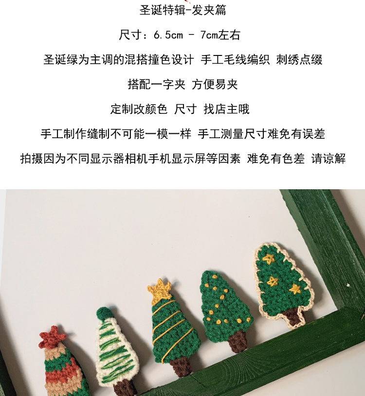 2024 새로운 빈티지 크리스마스 트리 헤어핀 손 자수 울 헤어 액세서리 작은 빨간 책 추천 깨진 헤어핀 사이드 클립스토어 가기