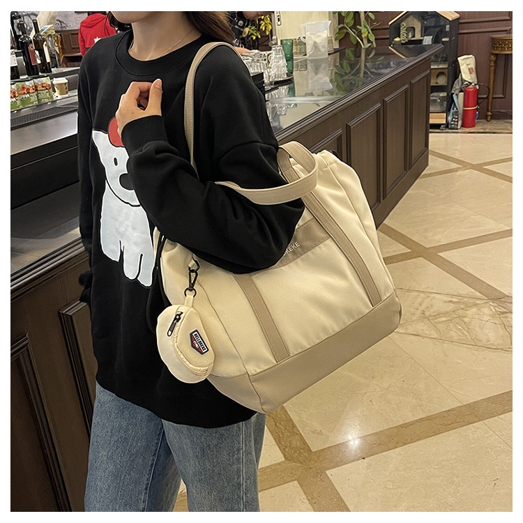 대용량 콘트라스트 캔버스 가방 2024 새로운 여름 캐주얼 천 가방 올 매치 휴대용 토트 백 학생 숄더 백
