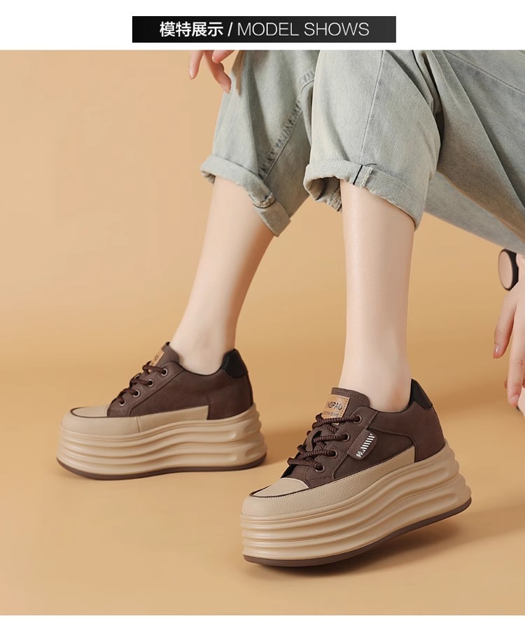 8cm 내부 높이 여성 신발 2024 새로운 가을과 겨울 퍼핀 플랫폼 신발 올 매치 캐주얼 신발 기모스토어 가기