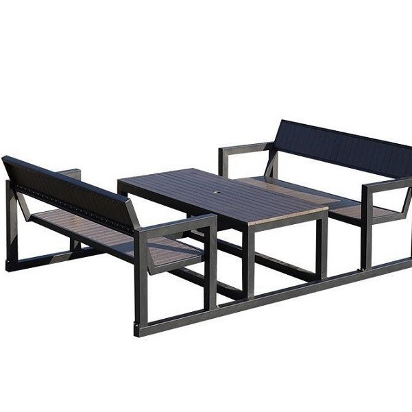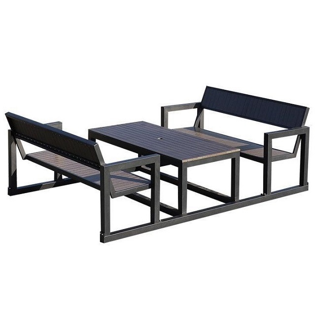야외 테이블과 의자 플라스틱 우드 코트야드 부식 목재 방수 선 스크린 조합 3 피스 레저 야외 발코니 정원