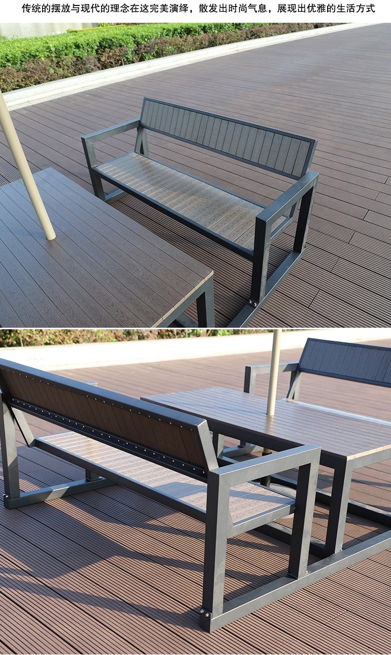 야외 테이블과 의자 플라스틱 우드 코트야드 부식 목재 방수 선 스크린 조합 3 피스 레저 야외 발코니 정원스토어 가기