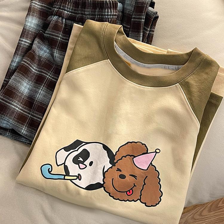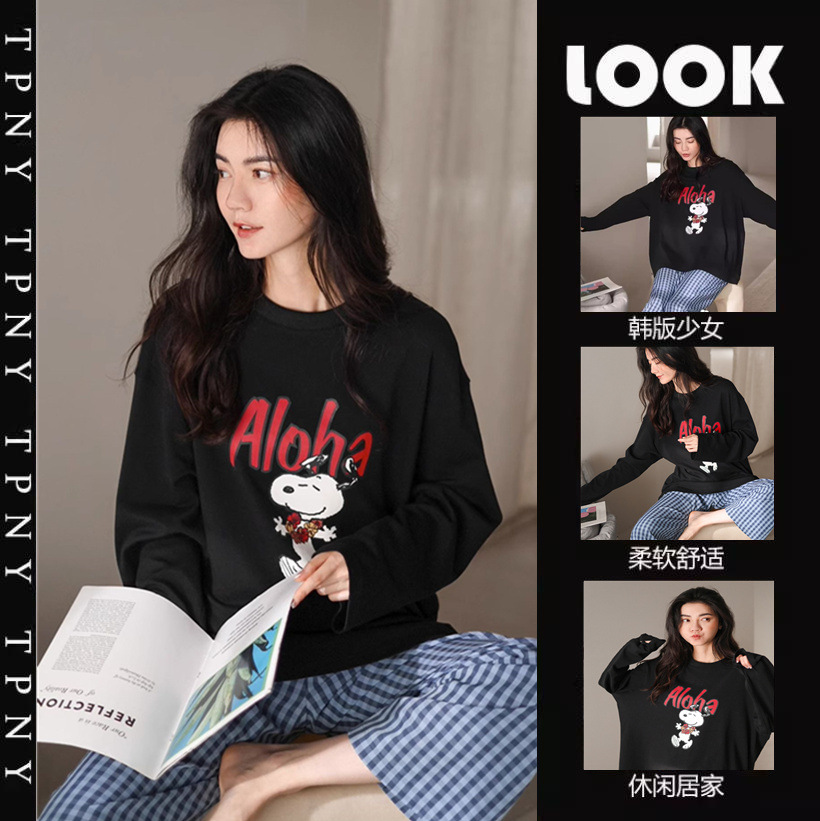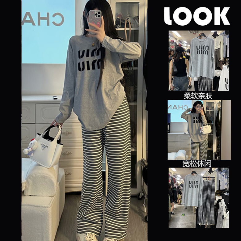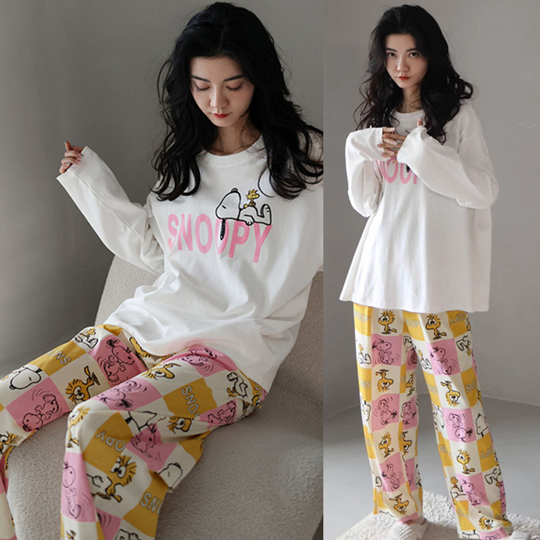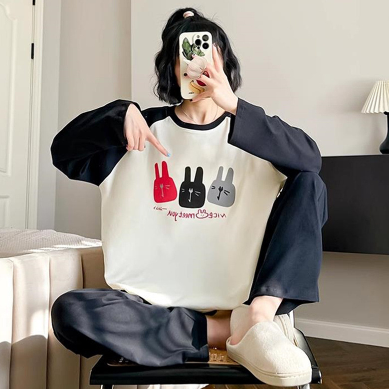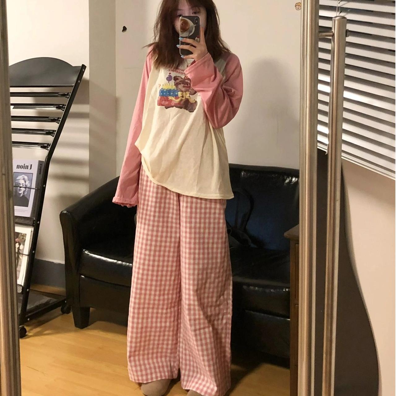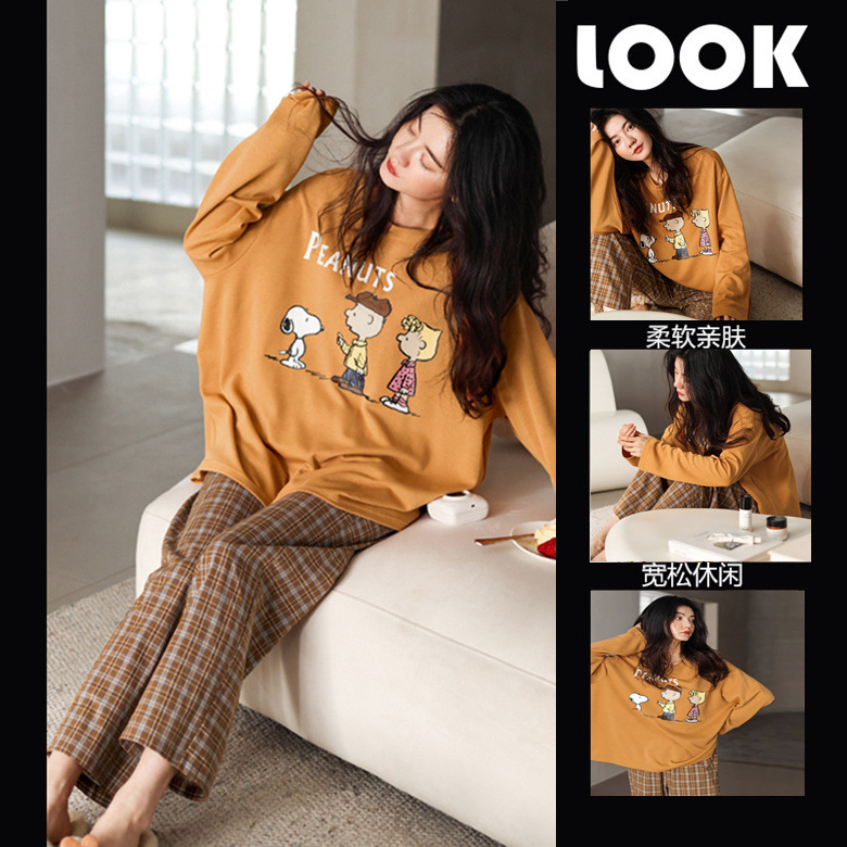 인즈 스타일 파자마 여성용 긴팔 바지 한국 스타일 봄과 가을 달콤한 잠옷 느슨한 홈 의류 세트 대외 무역 국경스토어 가기