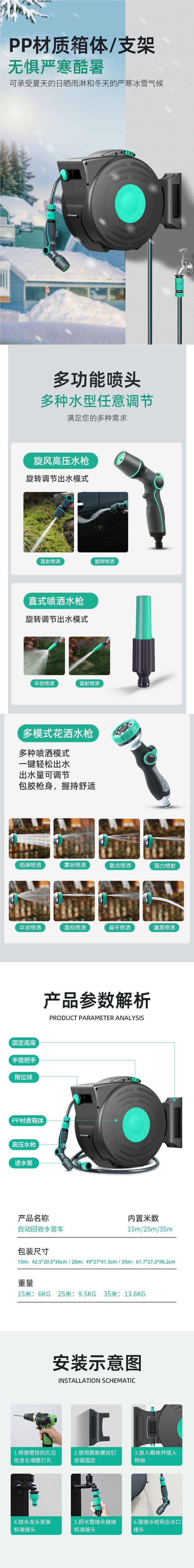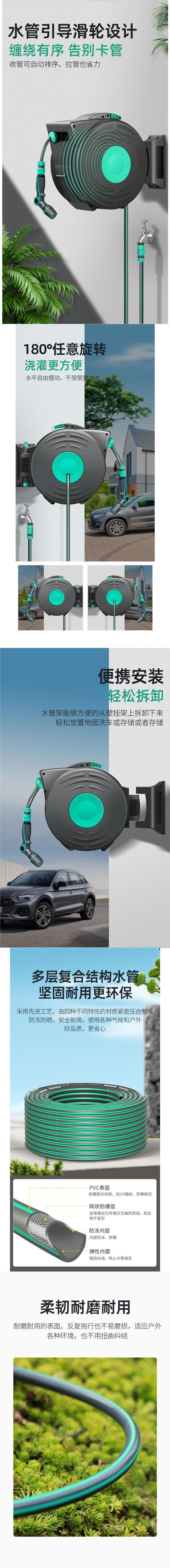 자동 복구 텔레스코픽 파이프 릴 자동차 세척 물 총 급수 꽃 야채 유물 물 드럼 벽에 장착 된 수도관 랙 릴