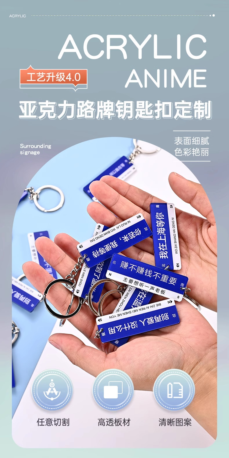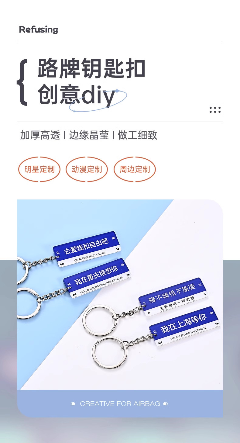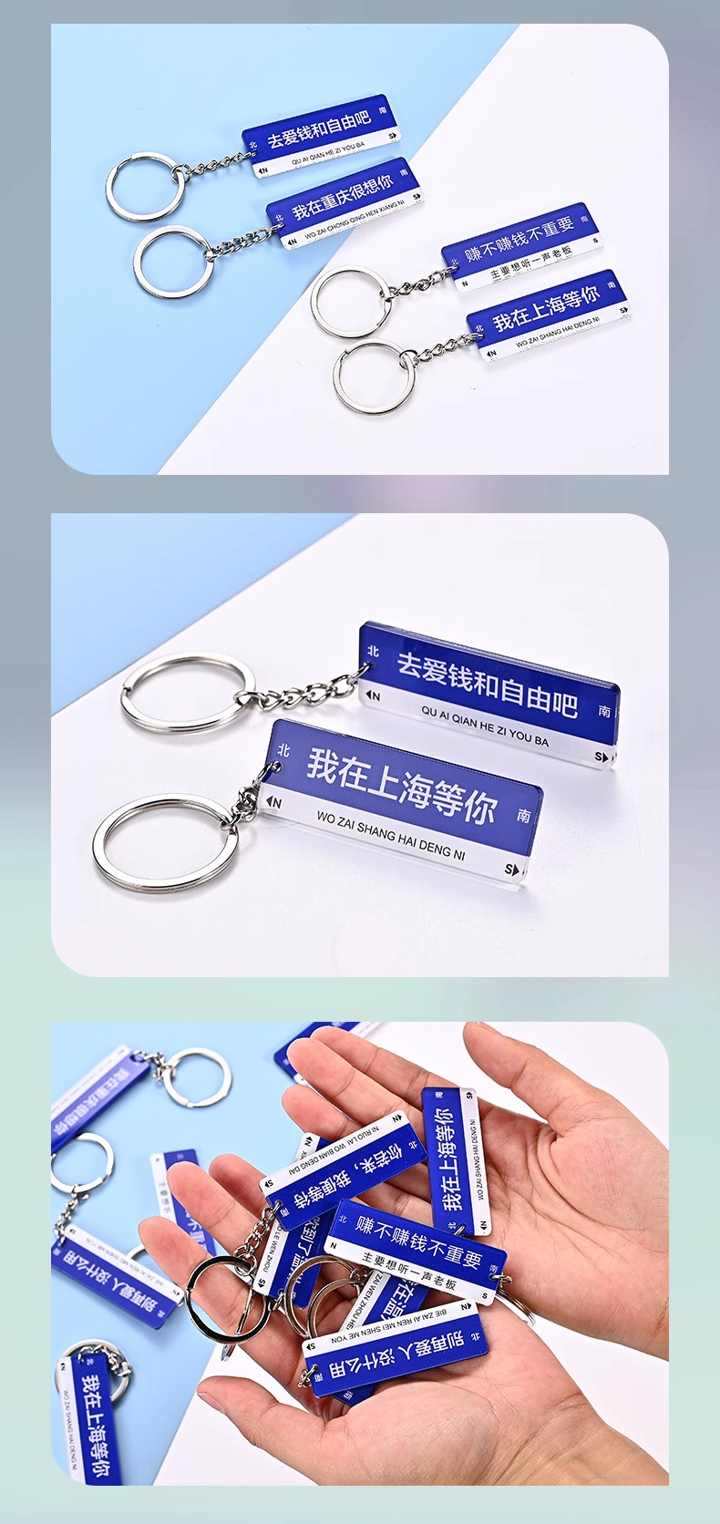 아크릴 도로 표지판 키 체인 도매 도시 관광 명소 그물 레드 펀치 카드 기념 펜던트 창조적 인 연인
