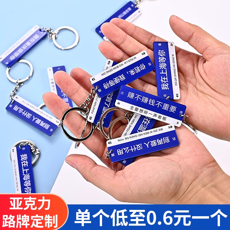 아크릴 도로 표지판 키 체인 도매 도시 관광 명소 그물 레드 펀치 카드 기념 펜던트 창조적 인 연인스토어 가기