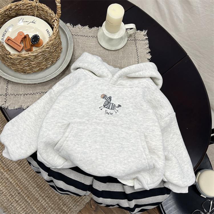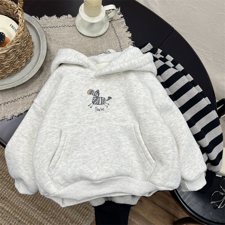 남아용 기모 스웨트셔츠 일체형 2025 신상 아동 겨울용 풀오버 한국 스타일 아기 겨울용 두꺼운 후드티스토어 가기
