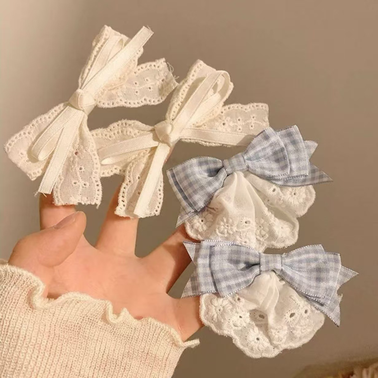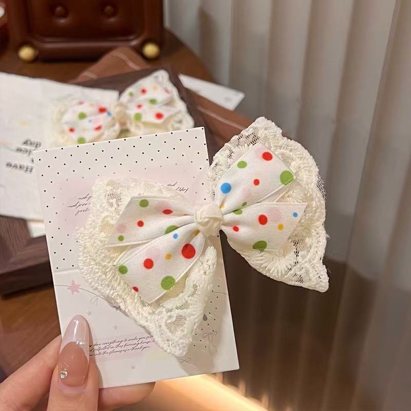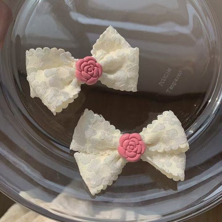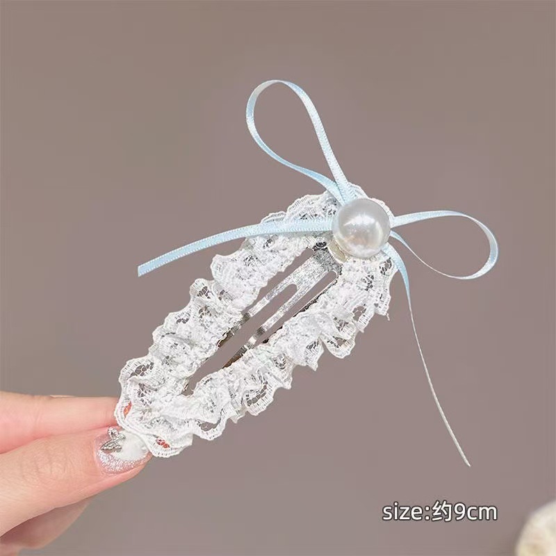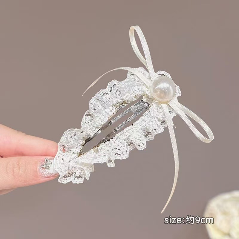 부드러운 다목적 밀크 화이트 레이스 보우 덕빌 클립 뱅 사이드 클립 소녀의 헤어 액세서리 폰테일 액세서리 헤어핀