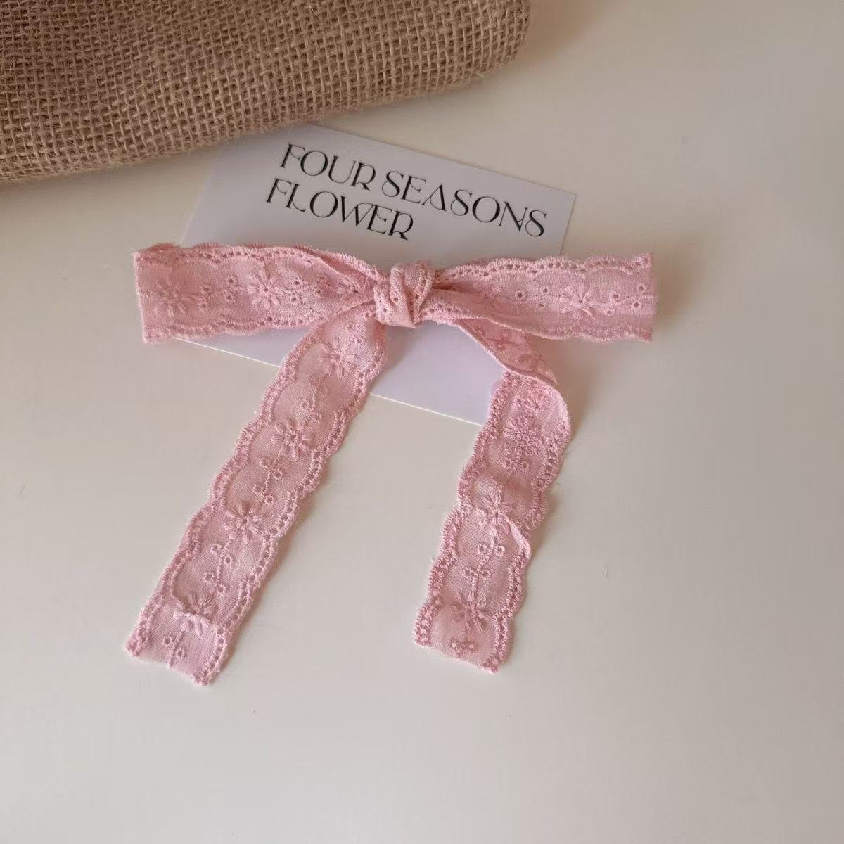 • 5788 소프트 레이스 리본 헤어핀-롱 핑크