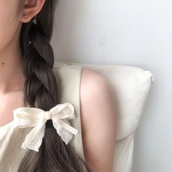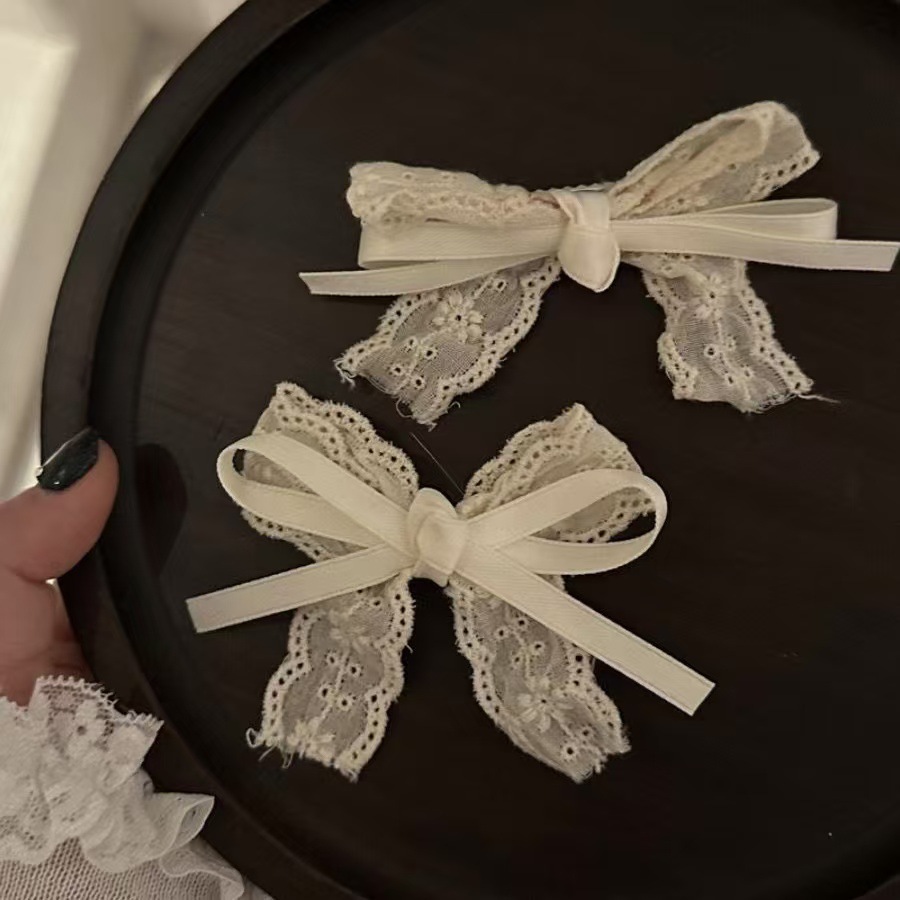 부드러운 다목적 밀크 화이트 레이스 보우 덕빌 클립 뱅 사이드 클립 소녀의 헤어 액세서리 폰테일 액세서리 헤어핀스토어 가기
