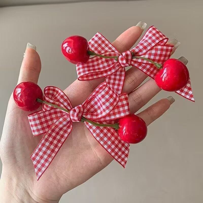 • 6056 레드 체리 머리핀 1개