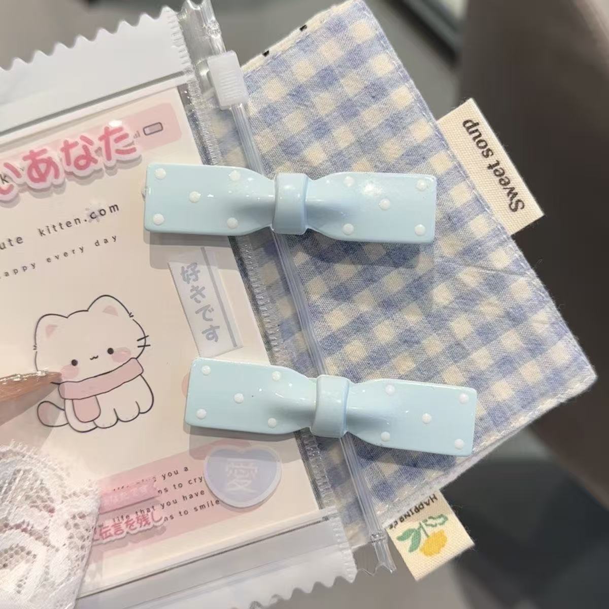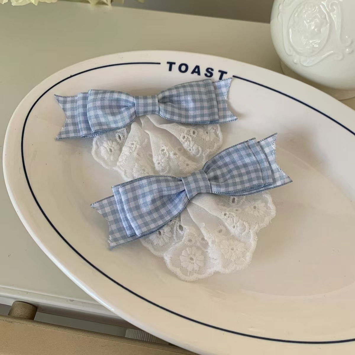 • 5033 파란색과 흰색 격자 무늬 머리핀