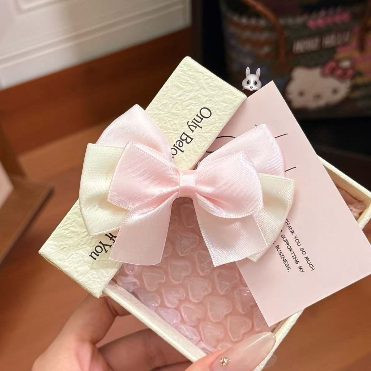 • 5052 러브태그 리본 헤어클립-베이지