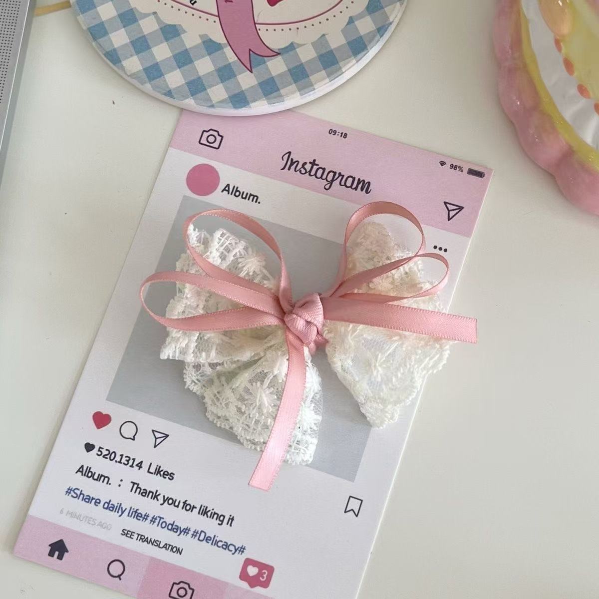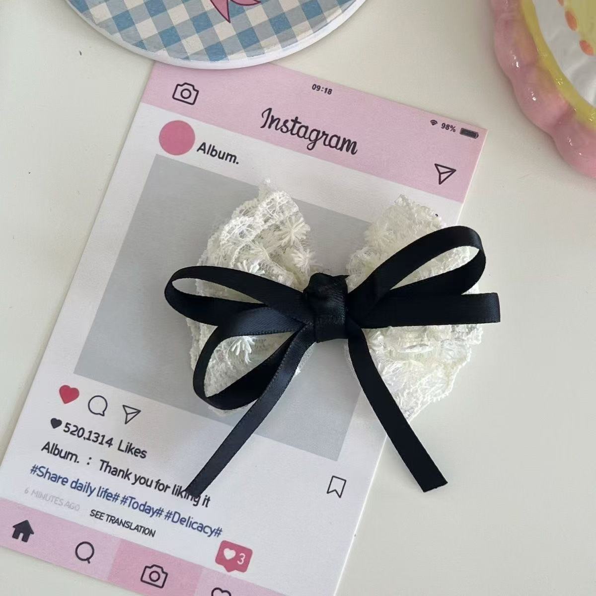 • 5898 짠맛과 달콤한 쌀 레이스 리본 머리핀