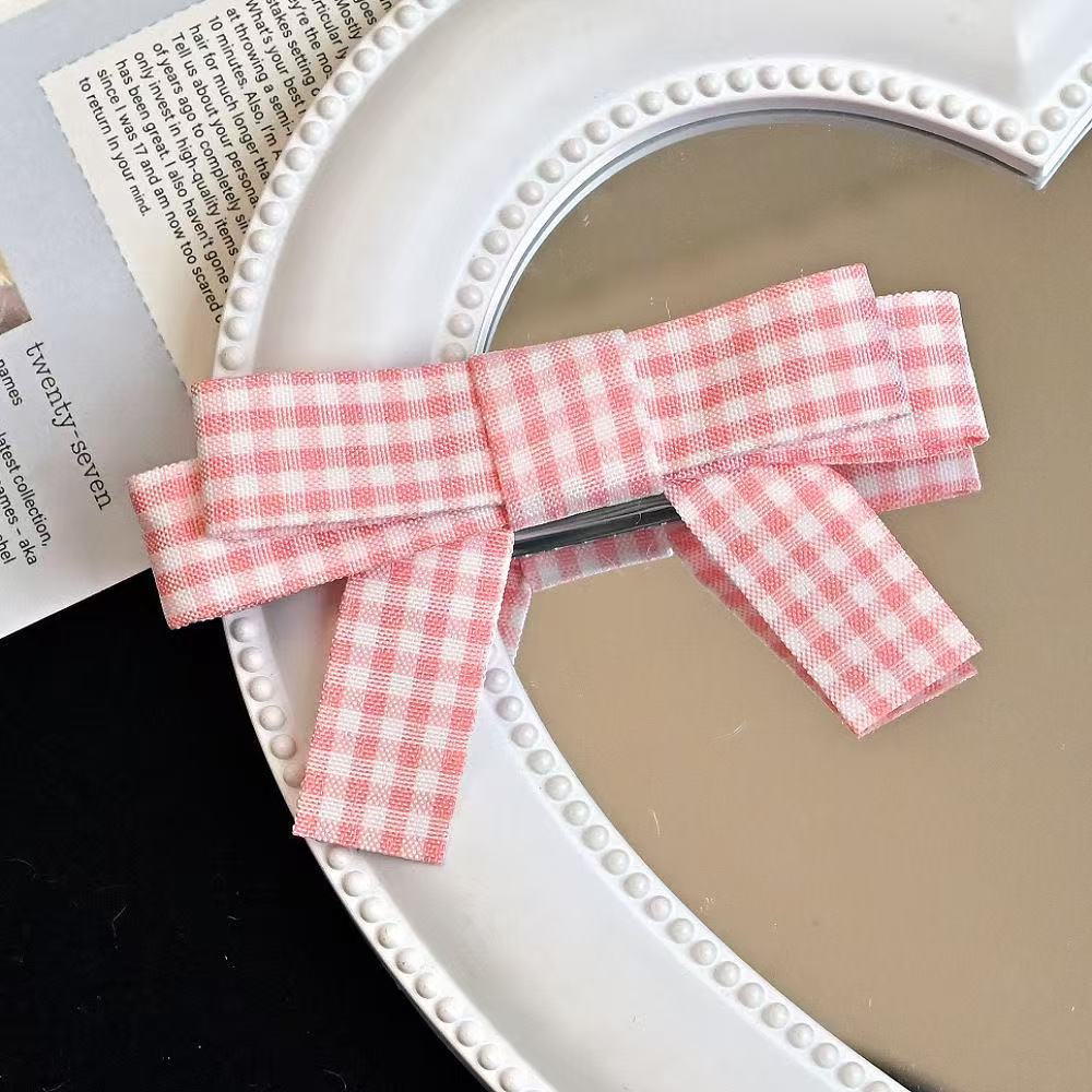 • 5005 더블 레이어 체크 무늬 보우 핑크