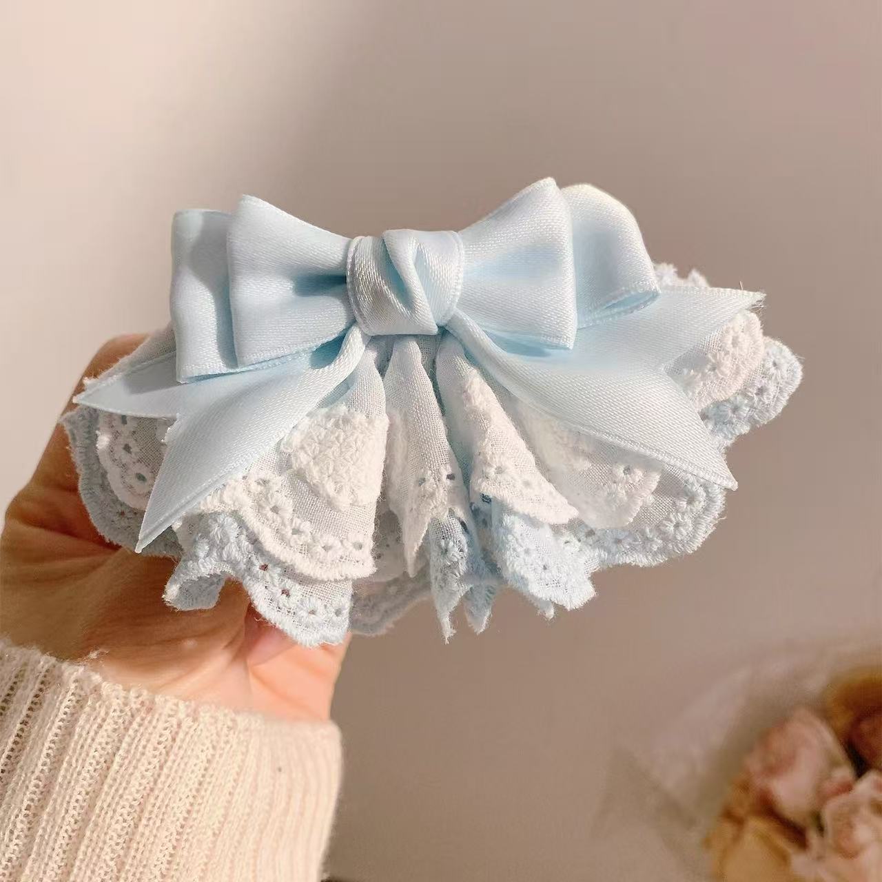 • 5788 소프트 레이스 리본 헤어핀-롱 베이지
