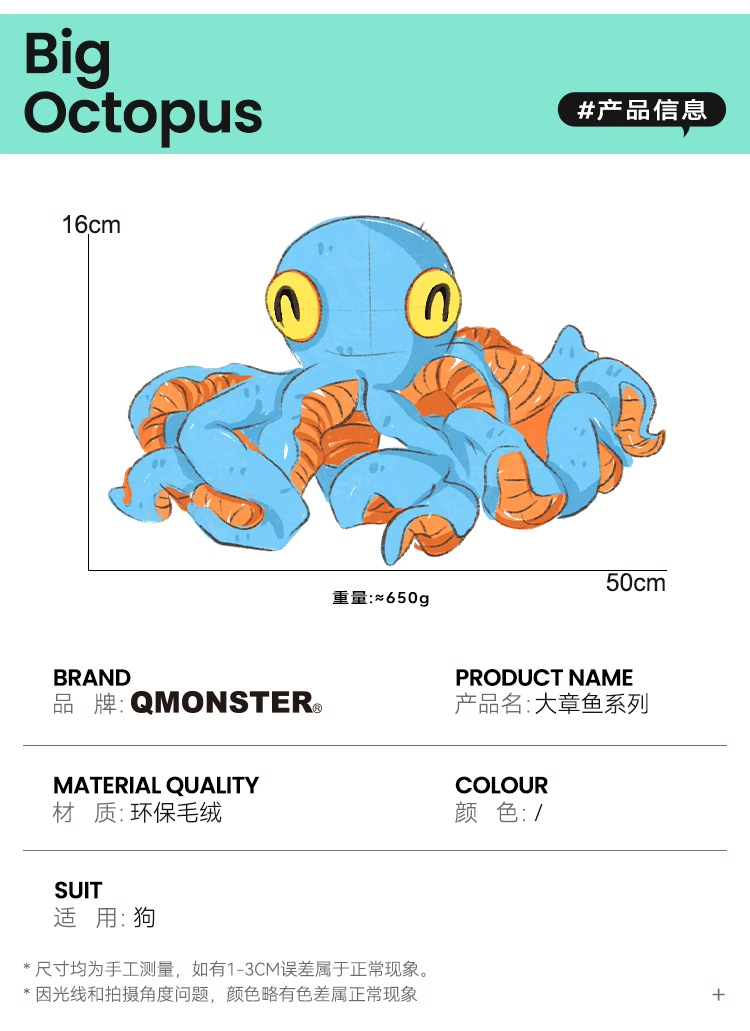 Qmonster 큰 문어 개 인터랙티브 풀 장난감 크고 중간 크기의 개 골든 리트리버 장난감 대형 줄다리기 인터랙티브스토어 가기