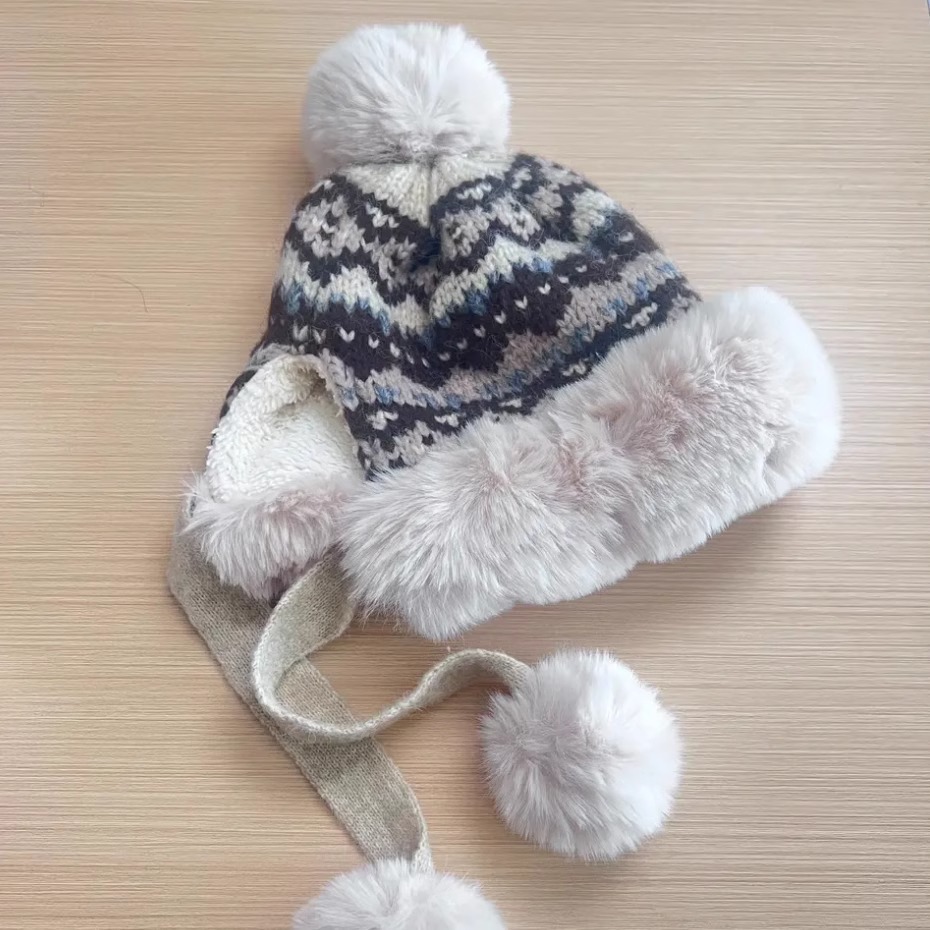 겨울 새 기모 두껍게 대조되는 색 격자 무늬 귀 모자 여성의 야외 냉간 따뜻한 올 매치 얼굴 표시 작은 레이 펑 캡