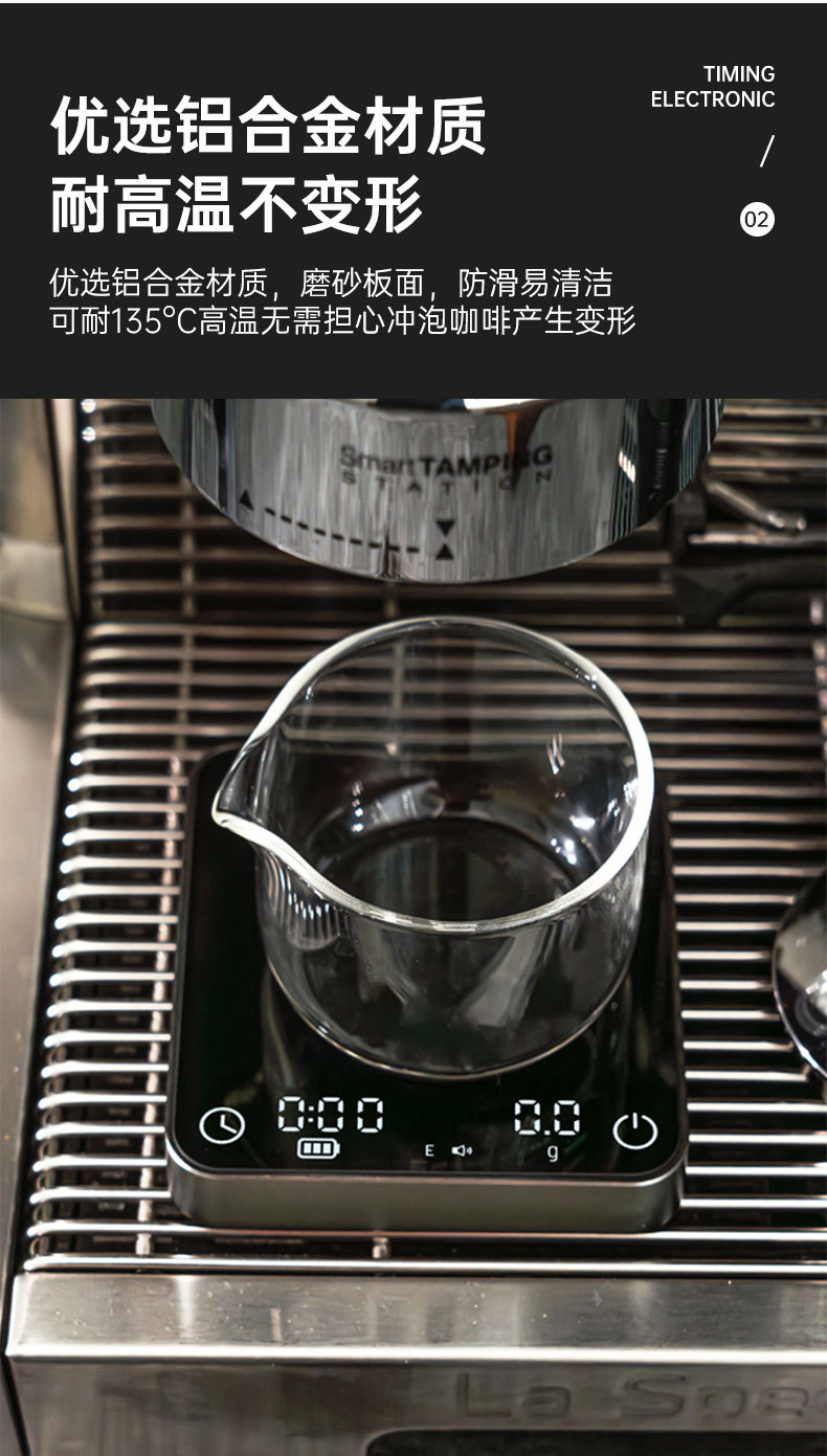 고급스러운 알루미늄 합금 이탈리아식 핸드브루 커피 전자저울, 정확한 분말과 물의 비율, 시간 및 무게 측정 기능을 갖춘 전문 바리스타 저울스토어 가기