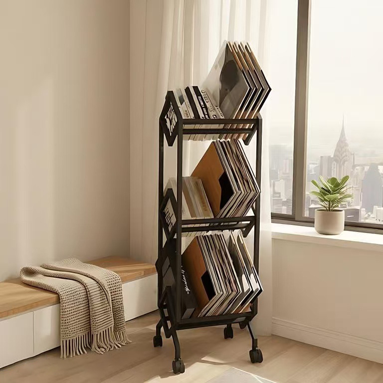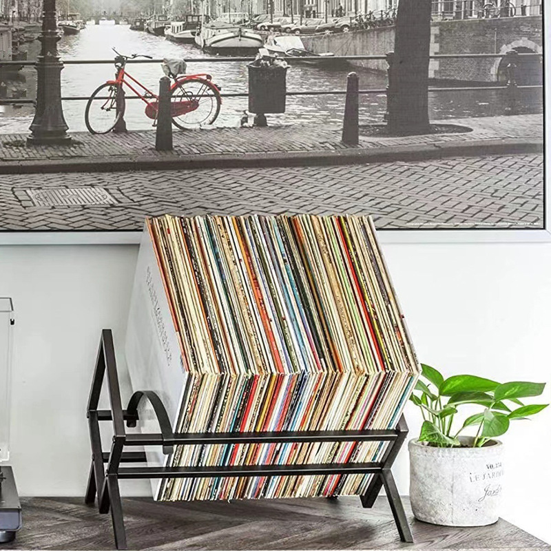 데스크탑 크리 에이 티브 책장 비닐 레코드 스토리지 랙 CD 레코드 매거진 스토리지 랙 금속 미세 철 스토리지 랙