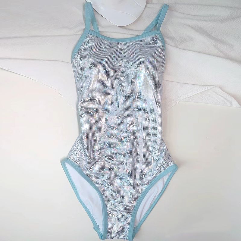 수영복 여성 2024 년 새로운 폭발 하이 엔드 감각 결합 된 레이싱 여성 수영복 프로 스포츠 화이트 달빛