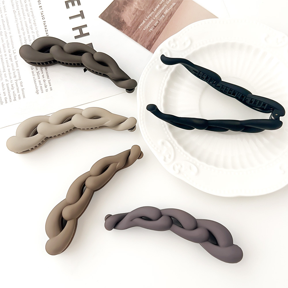 한국 머리핀 기질 뒤 머리 달콤한 트위스트 클립 체인 프로스트 마일 라드 바나나 클립 하프 포니 테일 세로 클립