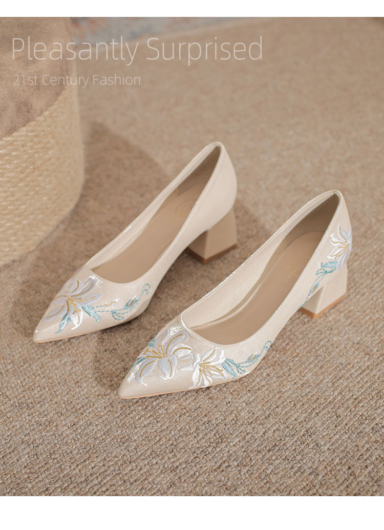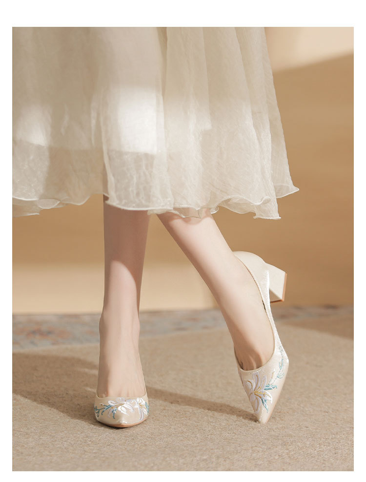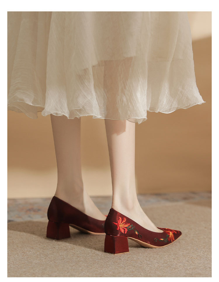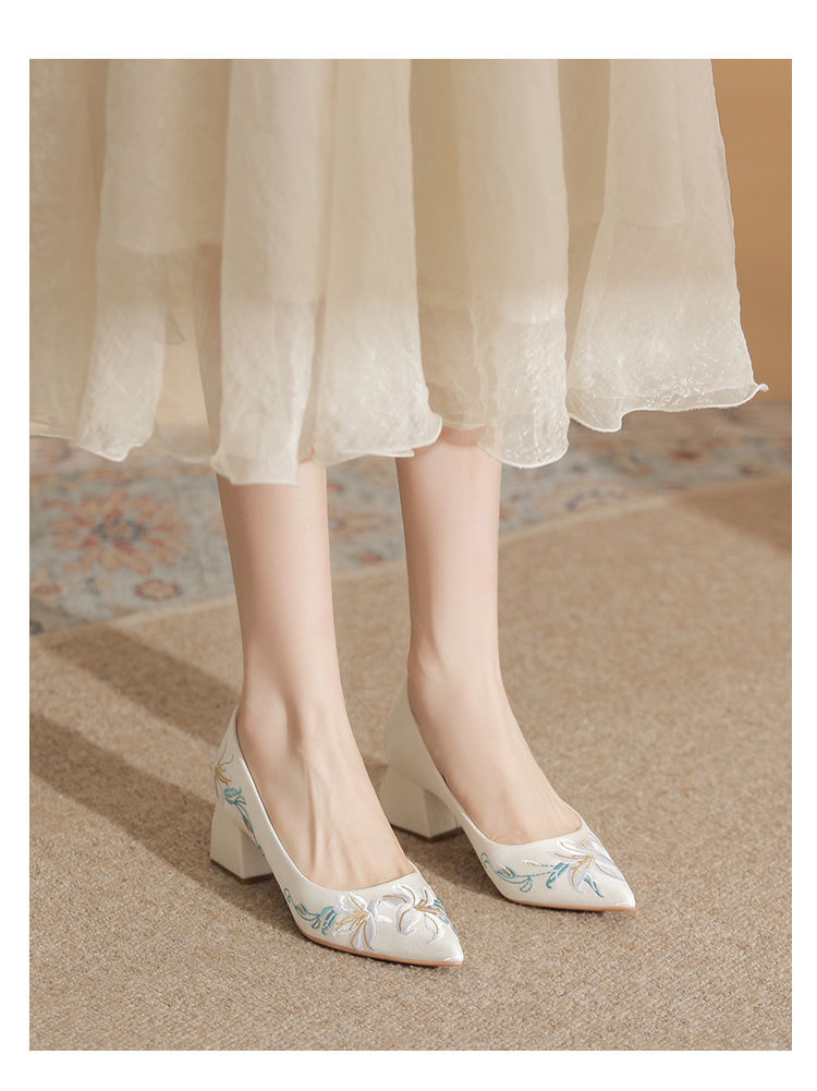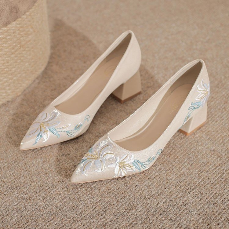 새로운 중국 신발 골동품 단일 레이어 신발 여성의 2024 새로운 프랑스 우아한 우아한 청삼 두꺼운 여성용 신발