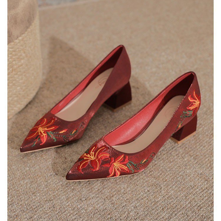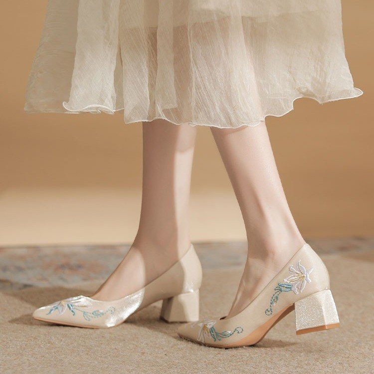 새로운 중국 신발 골동품 단일 레이어 신발 여성의 2024 새로운 프랑스 우아한 우아한 청삼 두꺼운 여성용 신발스토어 가기