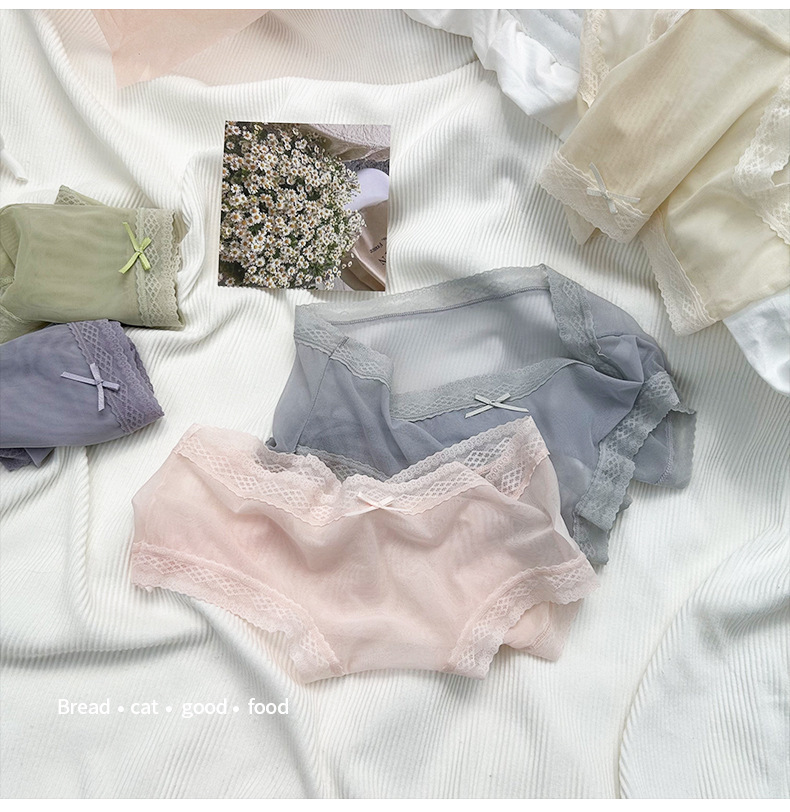 퓨어 아이스 실크 걸스 속옷 여성용 퓨어 코튼 박테리오틱 크로 치 미드 웨이스트 트레이스 라이트와 얇은 여성용 트라이앵글 레이스 속옷