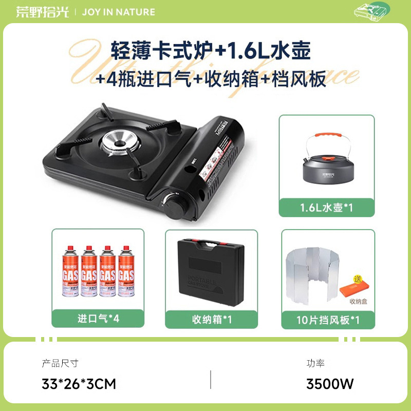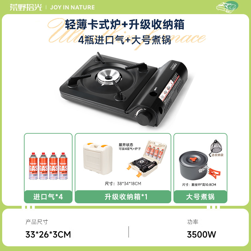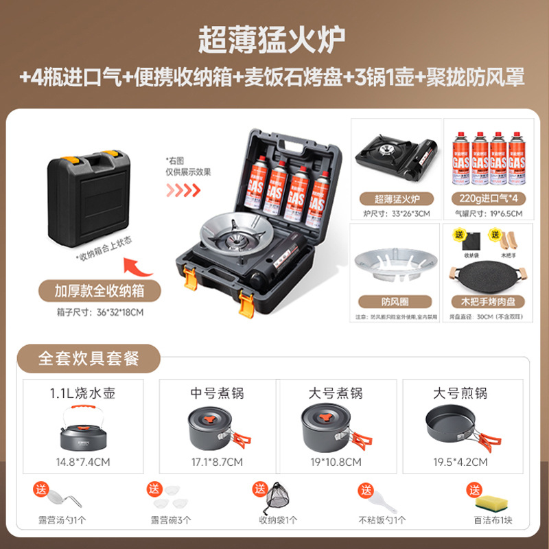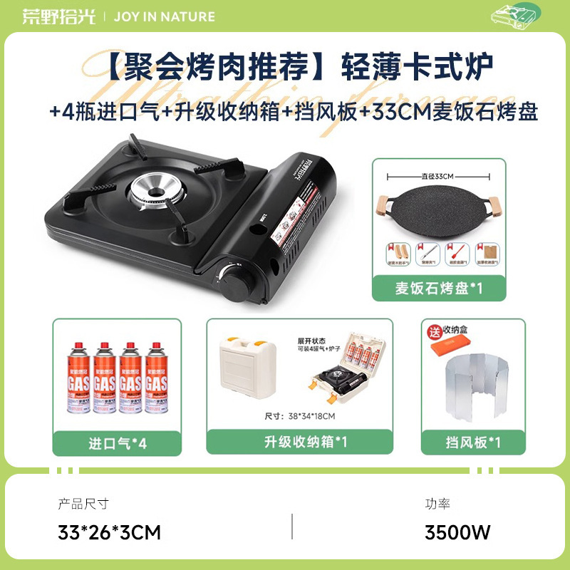 • 검정색 경량 카세트 스토브 + 가스통 4개 + 업그레이드된 보관함 + 앞유리 + 33cm 의료용 돌 베이킹 팬