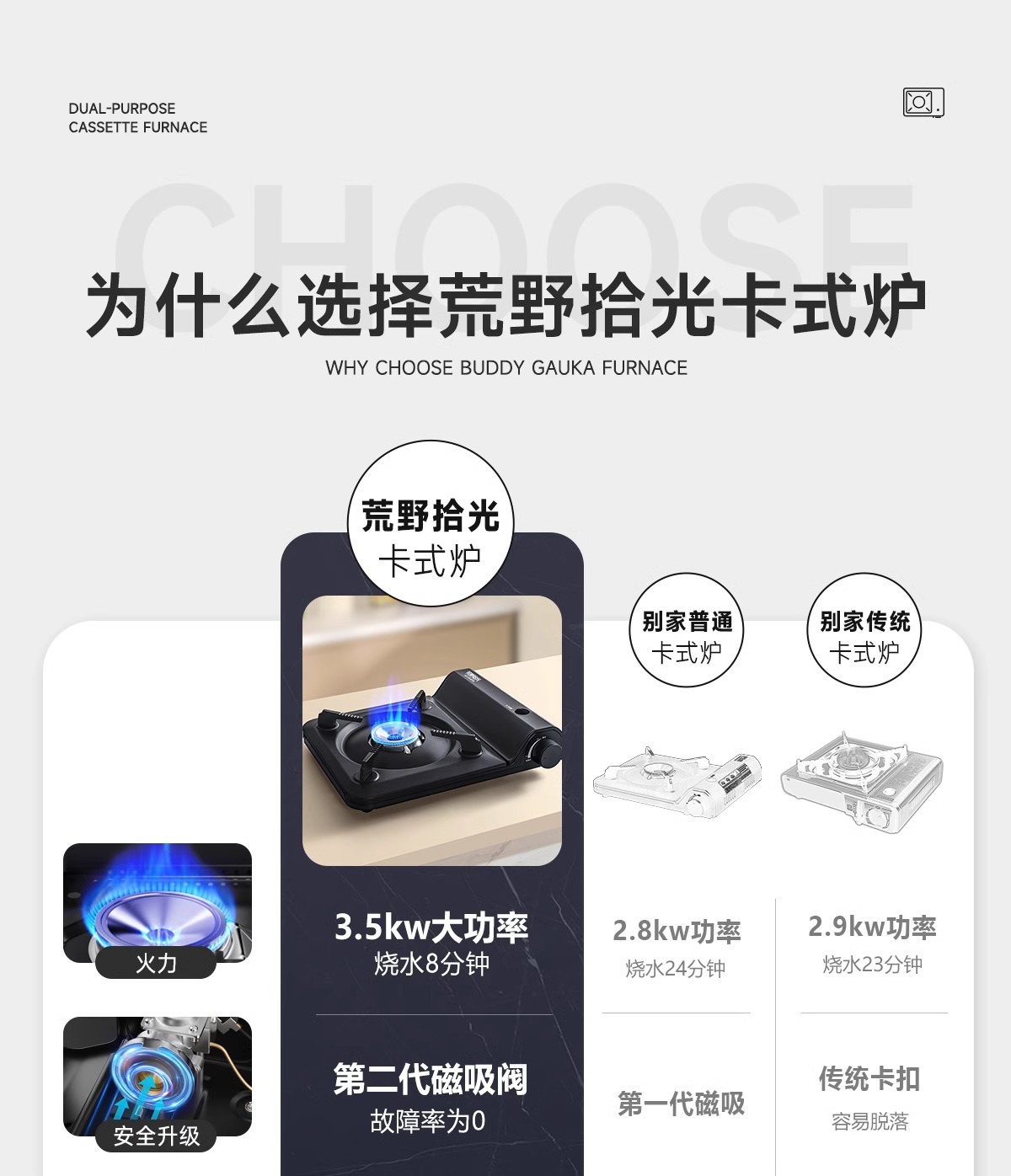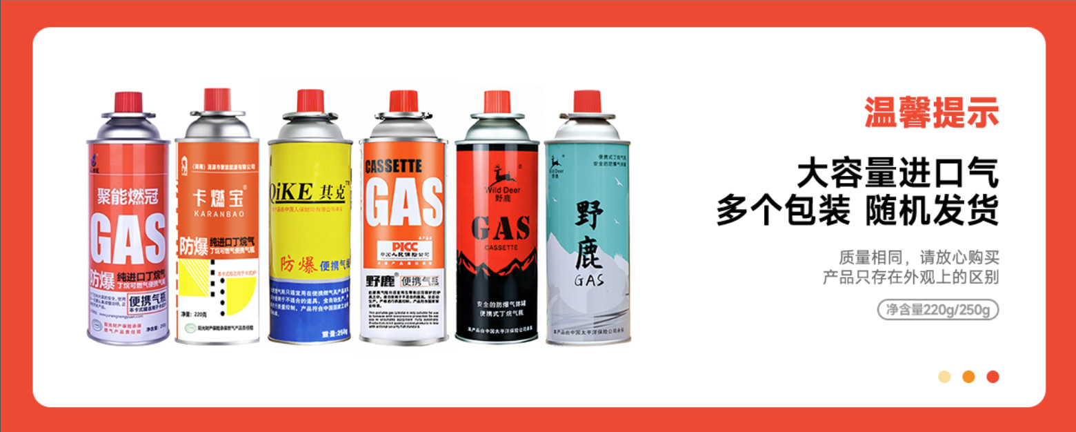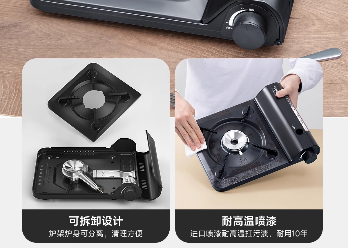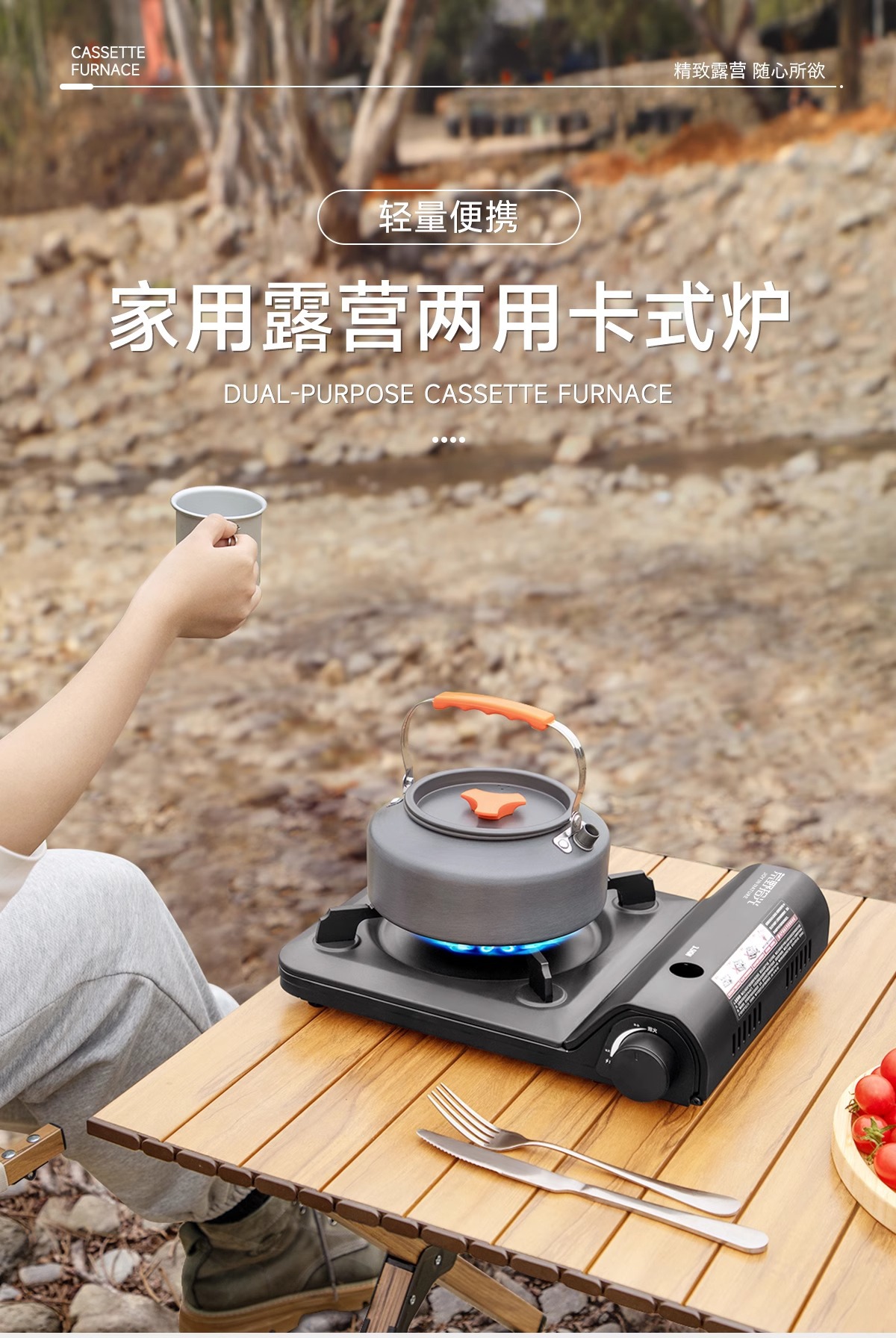 • [인기 판매 모델] 검정색 경량 카세트 스토브 + 가스 탱크 4개 + 보관 상자 + 방풍 링 + 한국식 베이킹 팬