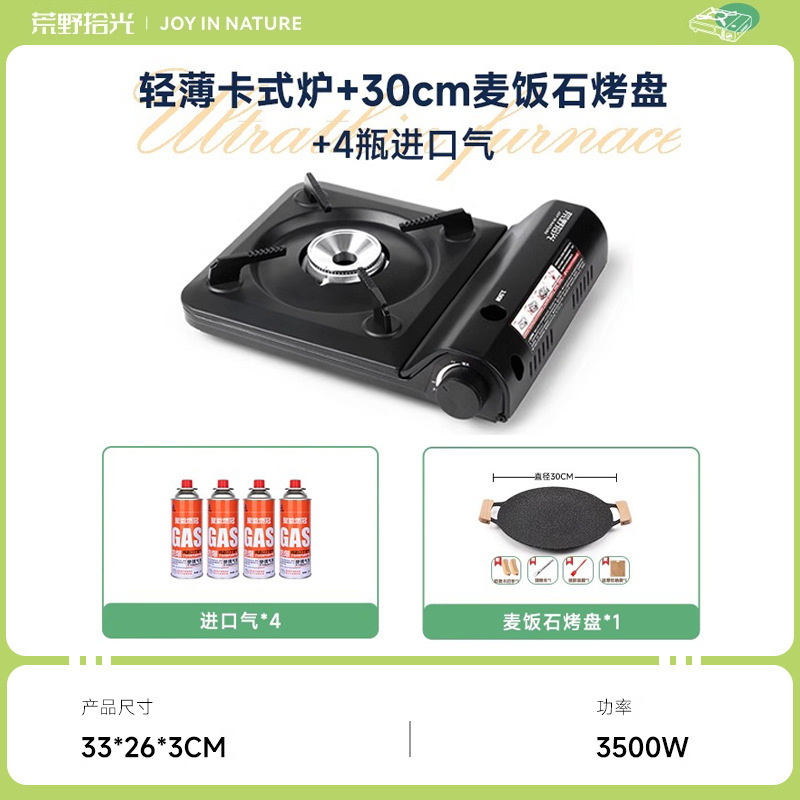 • 검정색 경량 카세트 스토브 + 가스통 4개 + 보관 상자 + 방풍 링 + 33cm 의료용 돌 베이킹 팬