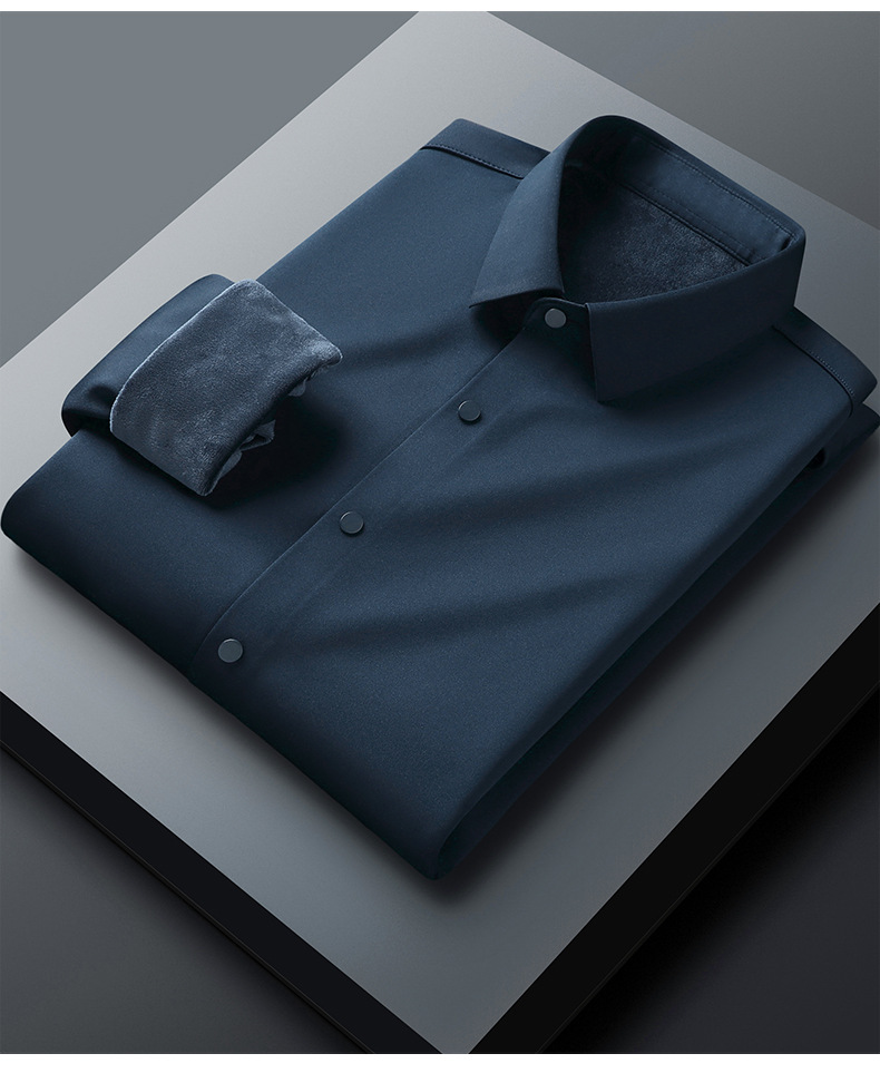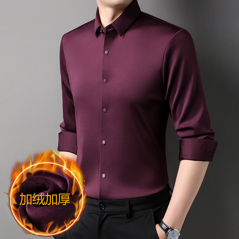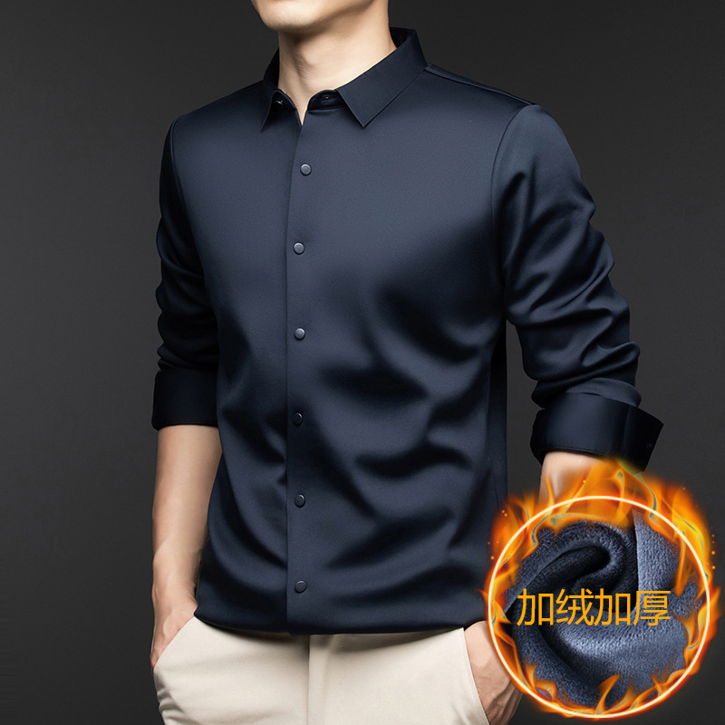 기모 두꺼운 따뜻한 셔츠 남자의 탄성 주름 방지 겨울 새로운 사업 캐주얼 단색 긴팔 셔츠 남자의 머리