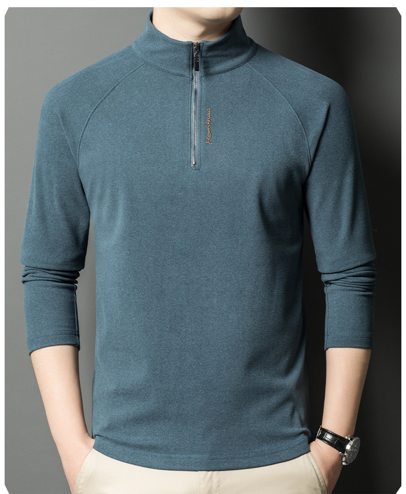 양면 벨벳 남성 스탠드 칼라 지퍼 긴팔 티셔츠 바닥 셔츠 새로운 가을과 겨울 따뜻한 내부 스웨터 남성 배치