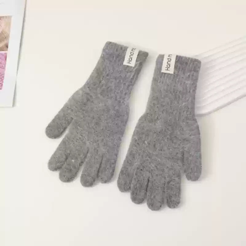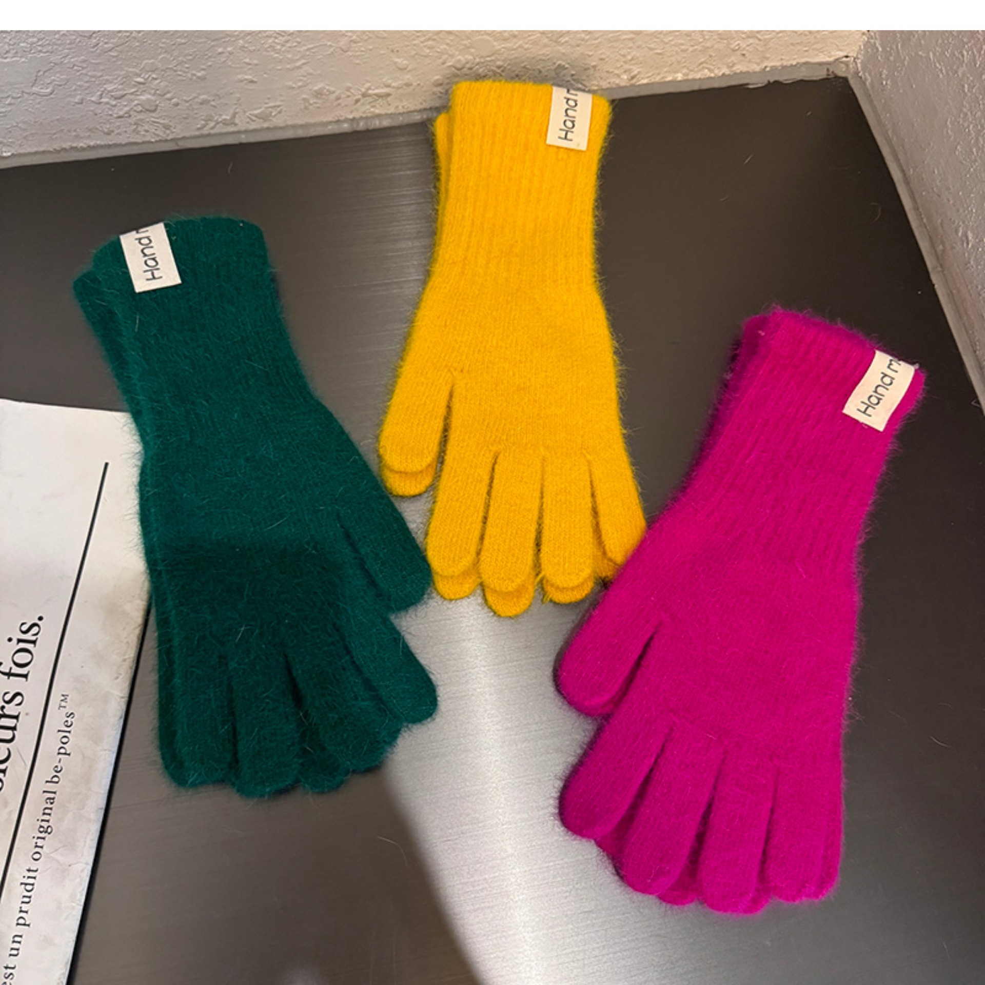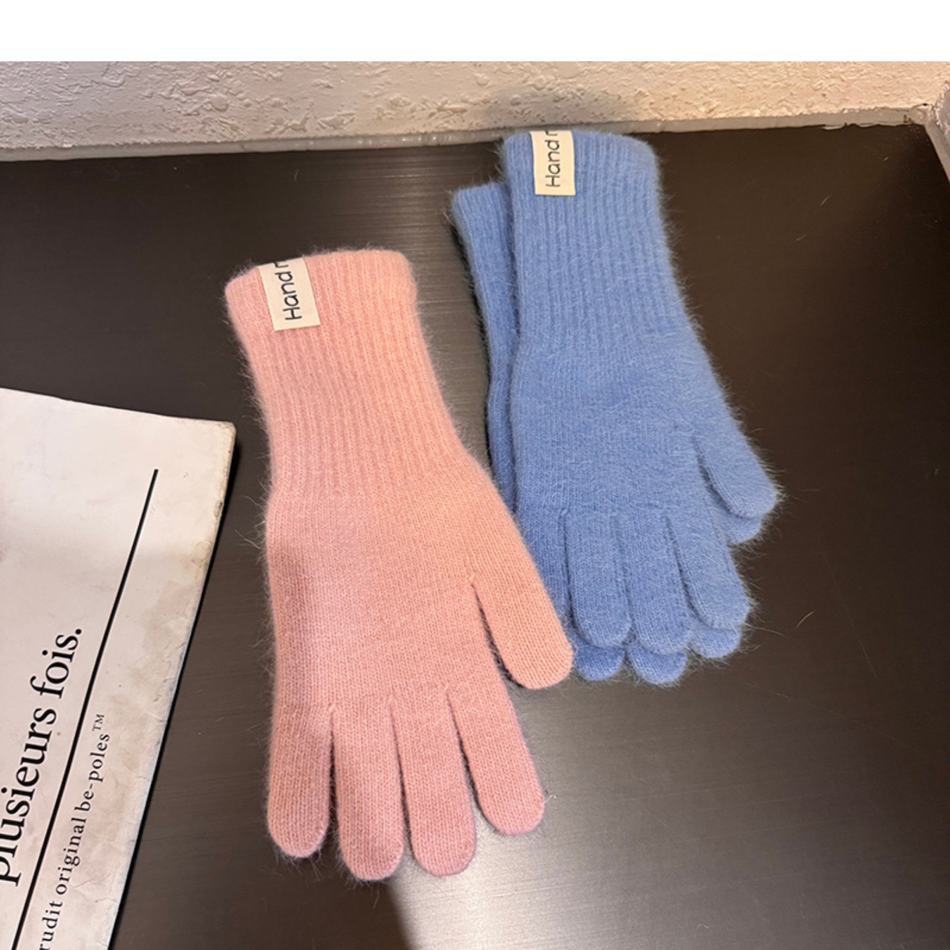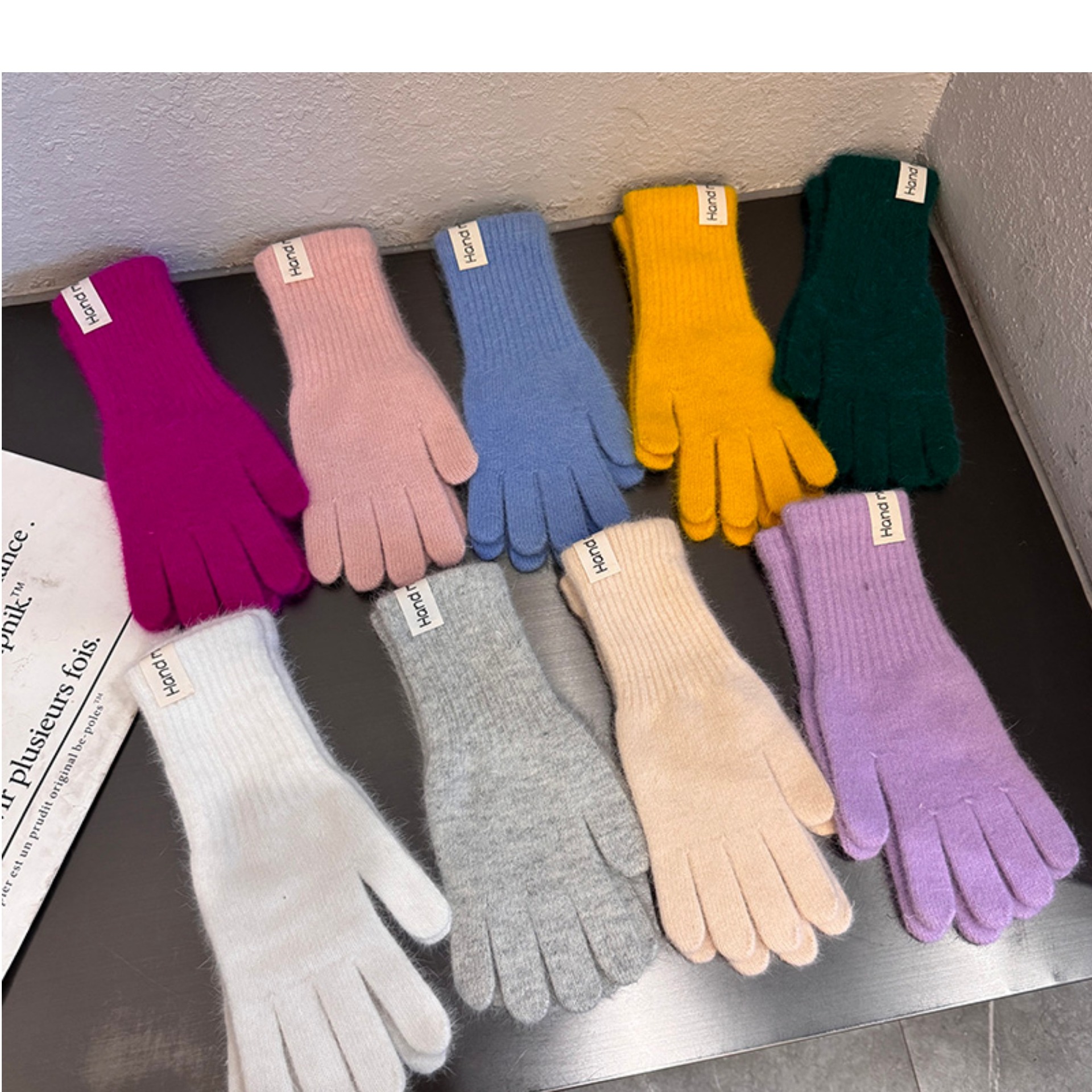 가을 겨울 한국식 단색 라벨 긴 니트 울 손가락 장갑 여성용 따뜻하고 두꺼운 방한 손목 보호대 다용도스토어 가기