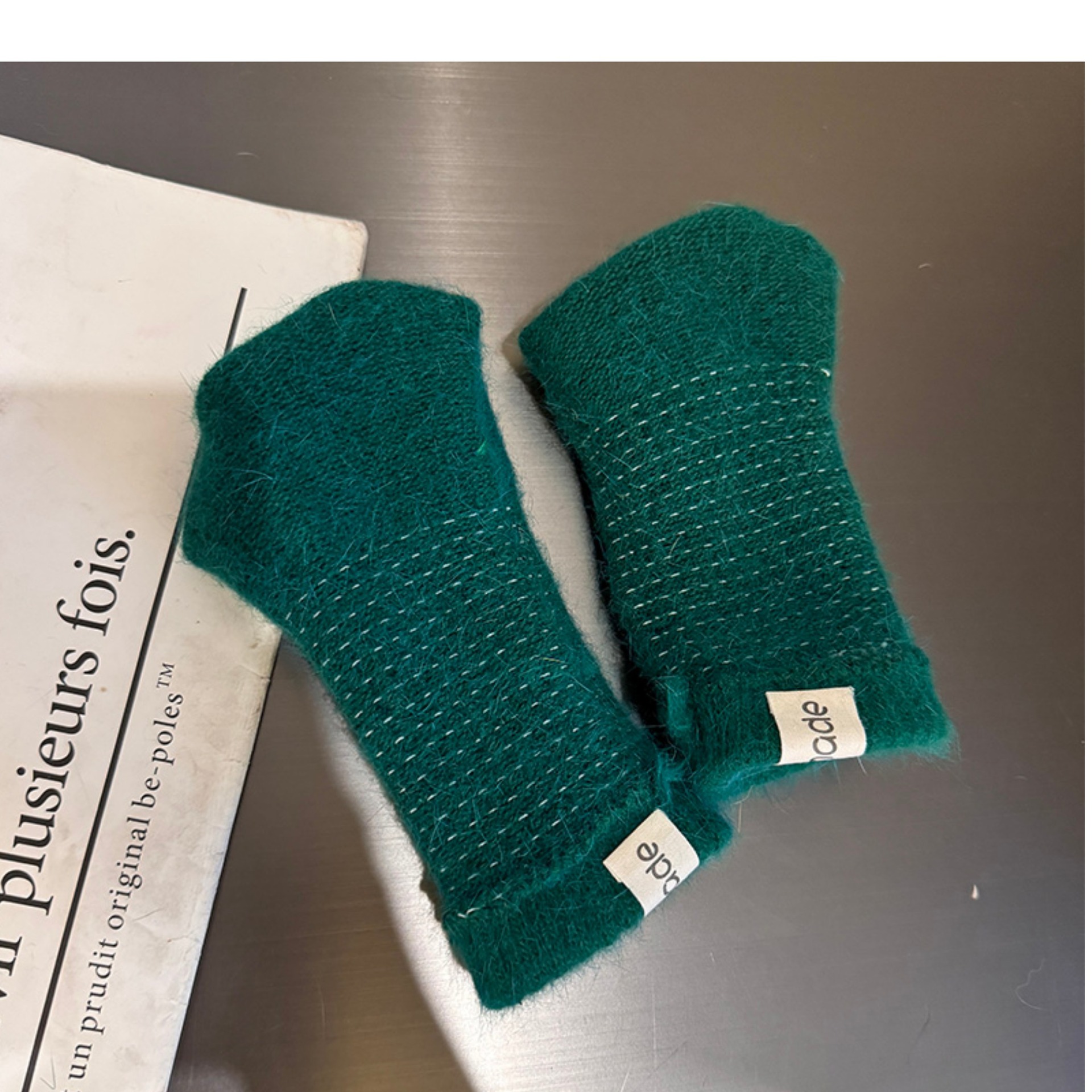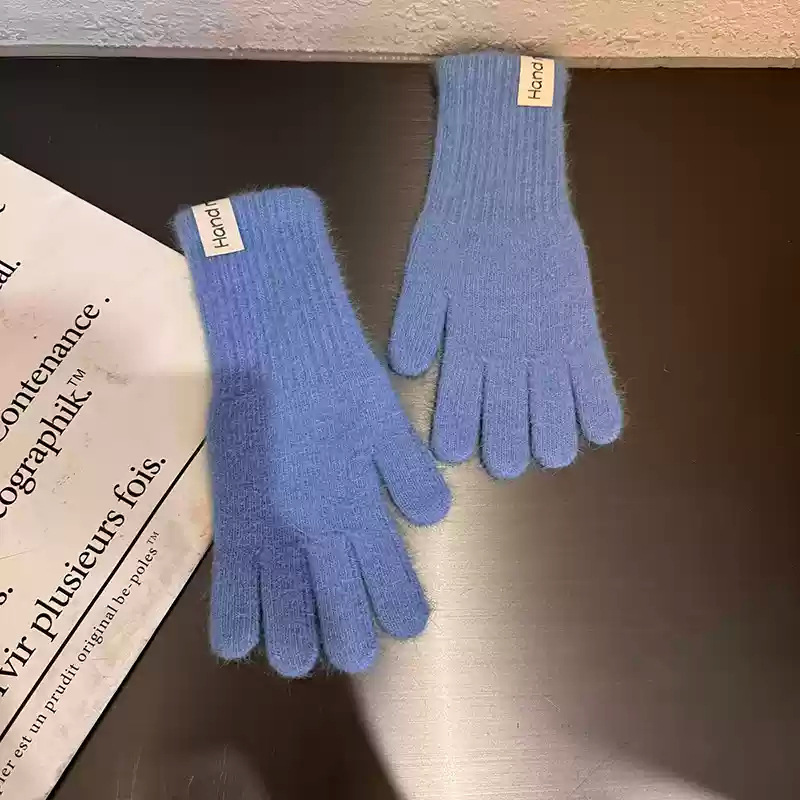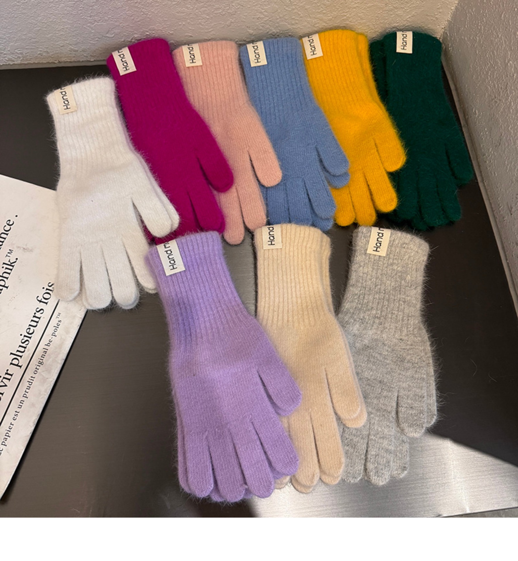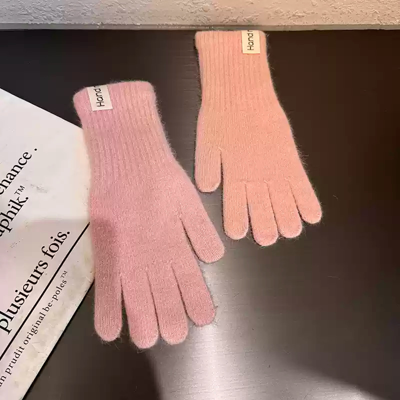 가을 겨울 한국식 단색 라벨 긴 니트 울 손가락 장갑 여성용 따뜻하고 두꺼운 방한 손목 보호대 다용도스토어 가기