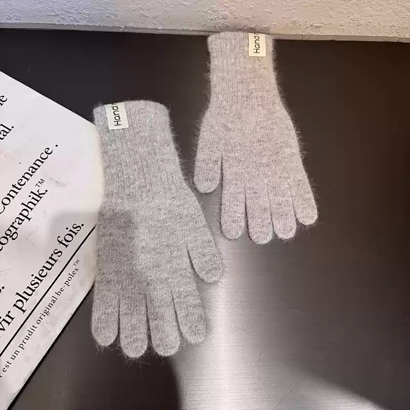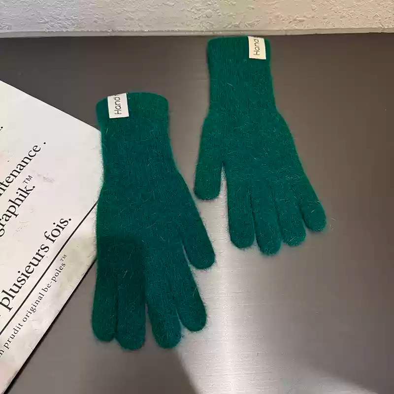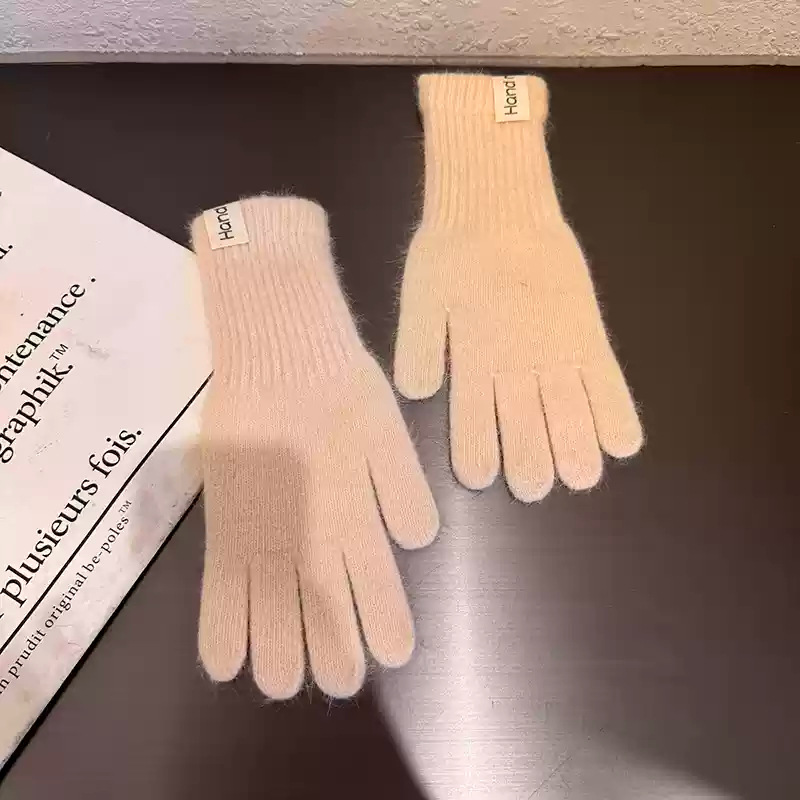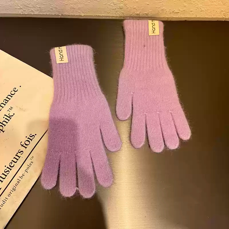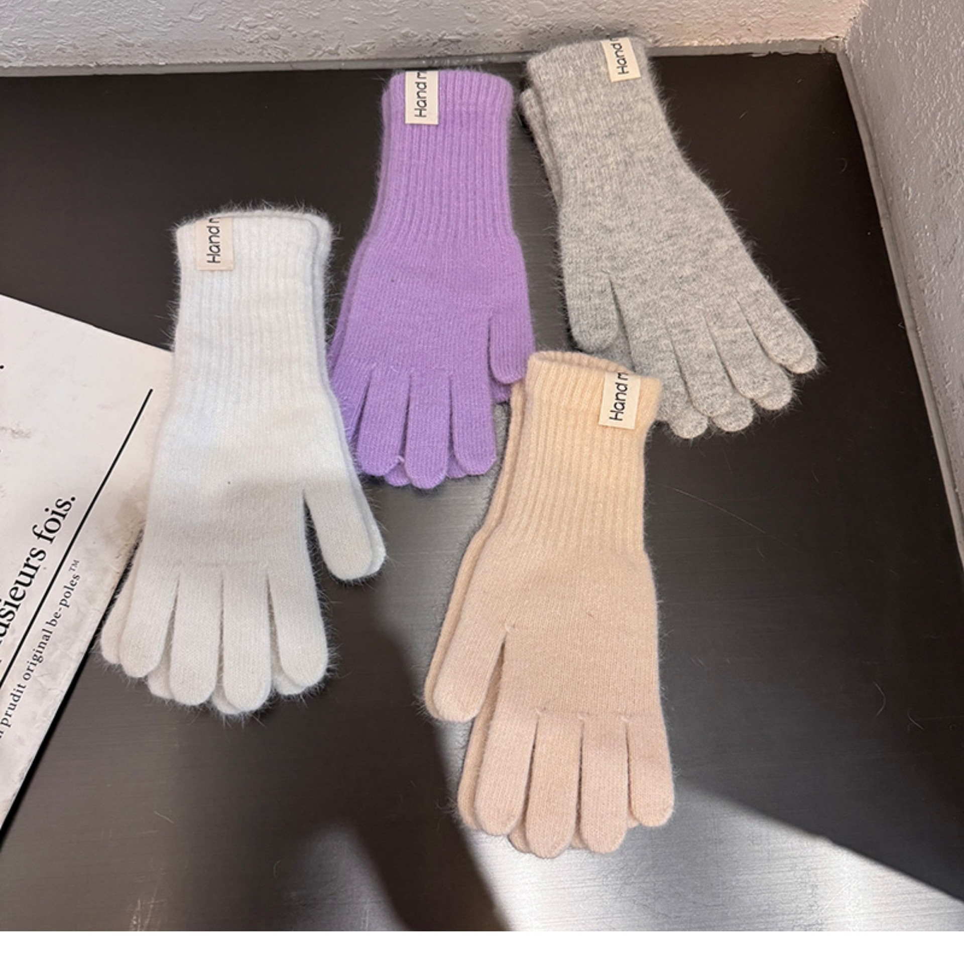 가을 겨울 한국식 단색 라벨 긴 니트 울 손가락 장갑 여성용 따뜻하고 두꺼운 방한 손목 보호대 다용도