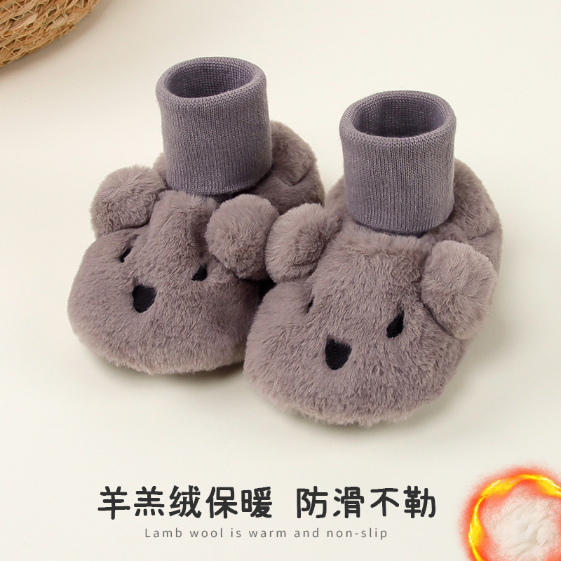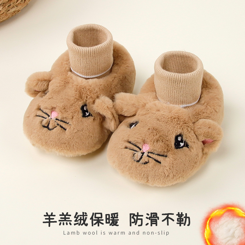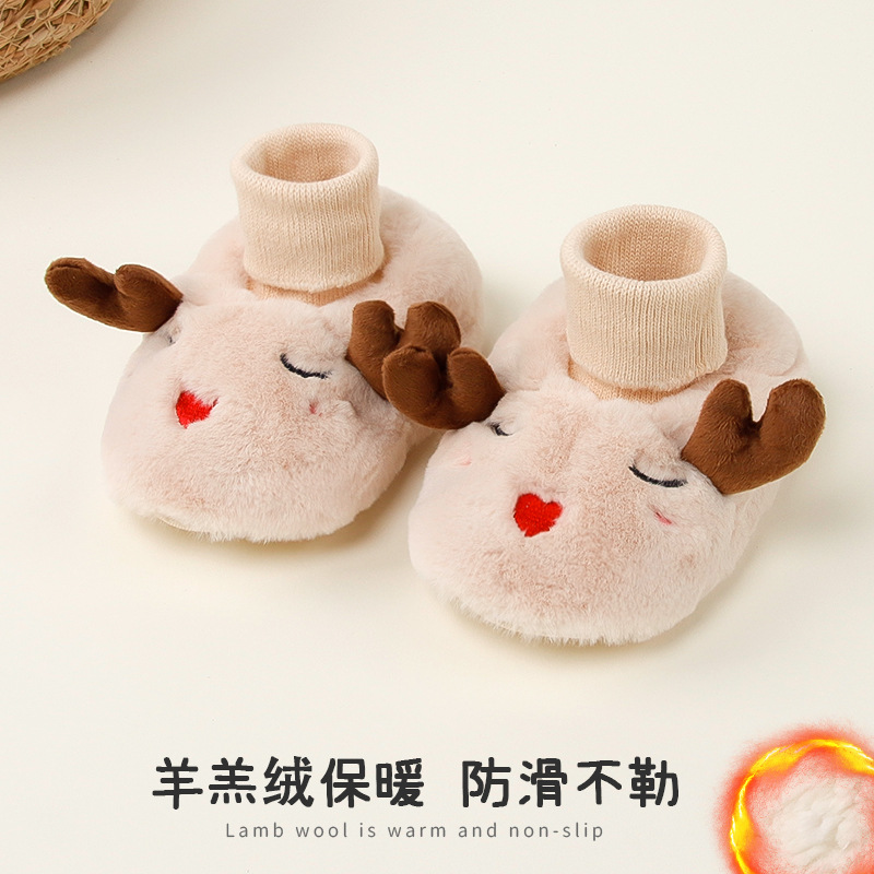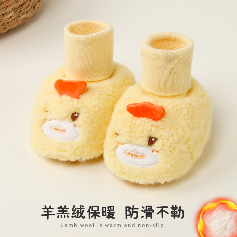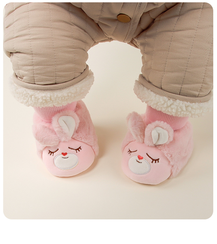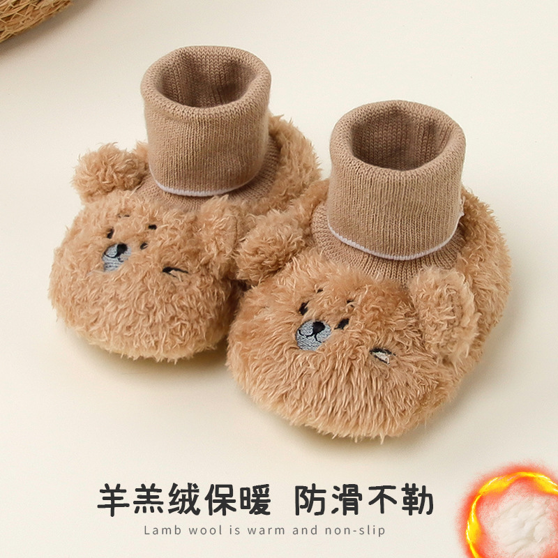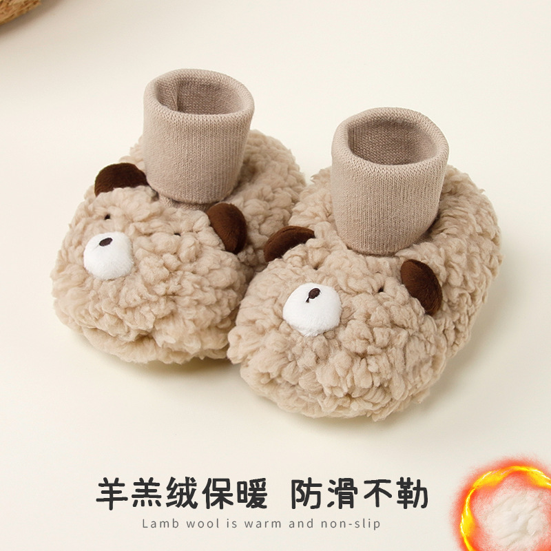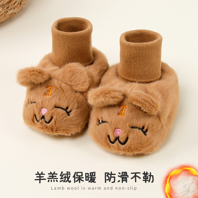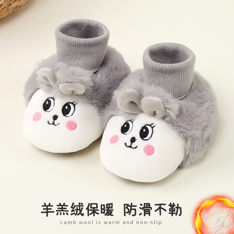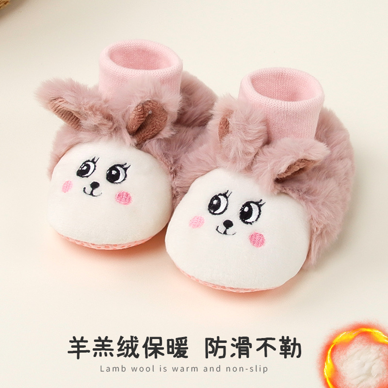 아기 어린이 신발 가을과 겨울 아기 유아 양말 기모 두꺼운 만화 아기 양말 따뜻한 미끄럼 방지 유아 신발 양말