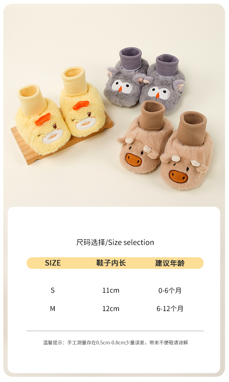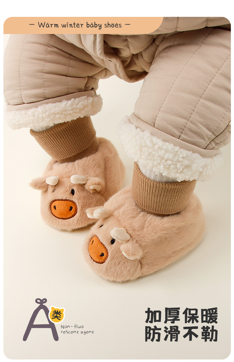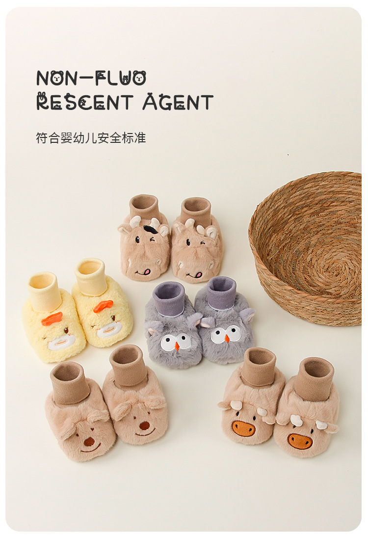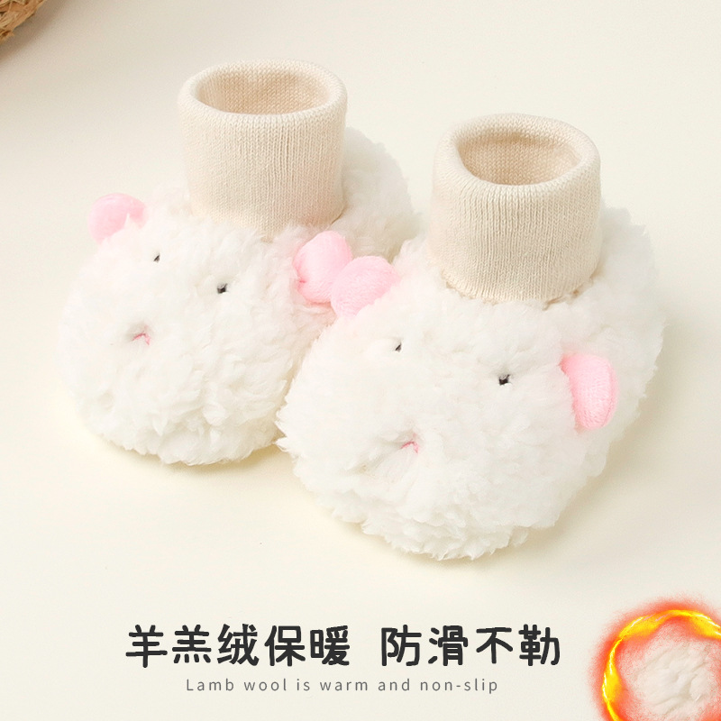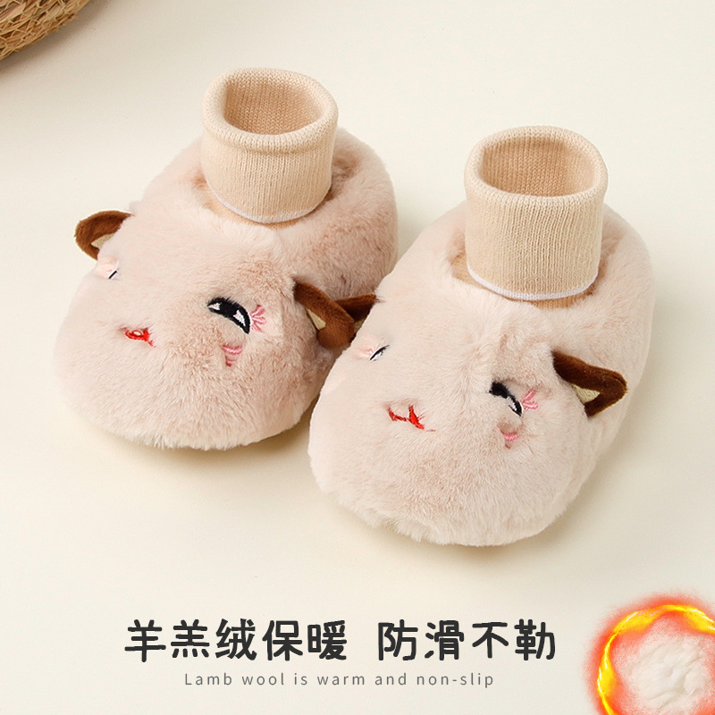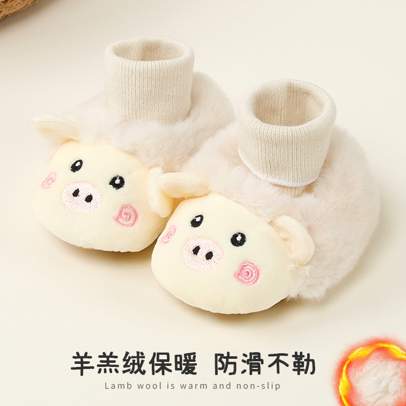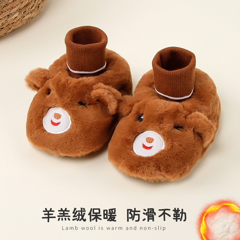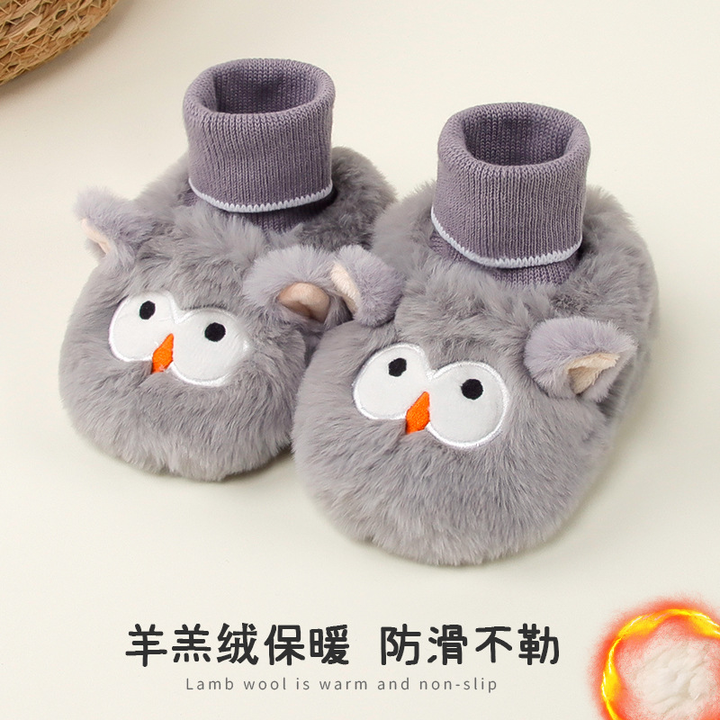 아기 어린이 신발 가을과 겨울 아기 유아 양말 기모 두꺼운 만화 아기 양말 따뜻한 미끄럼 방지 유아 신발 양말