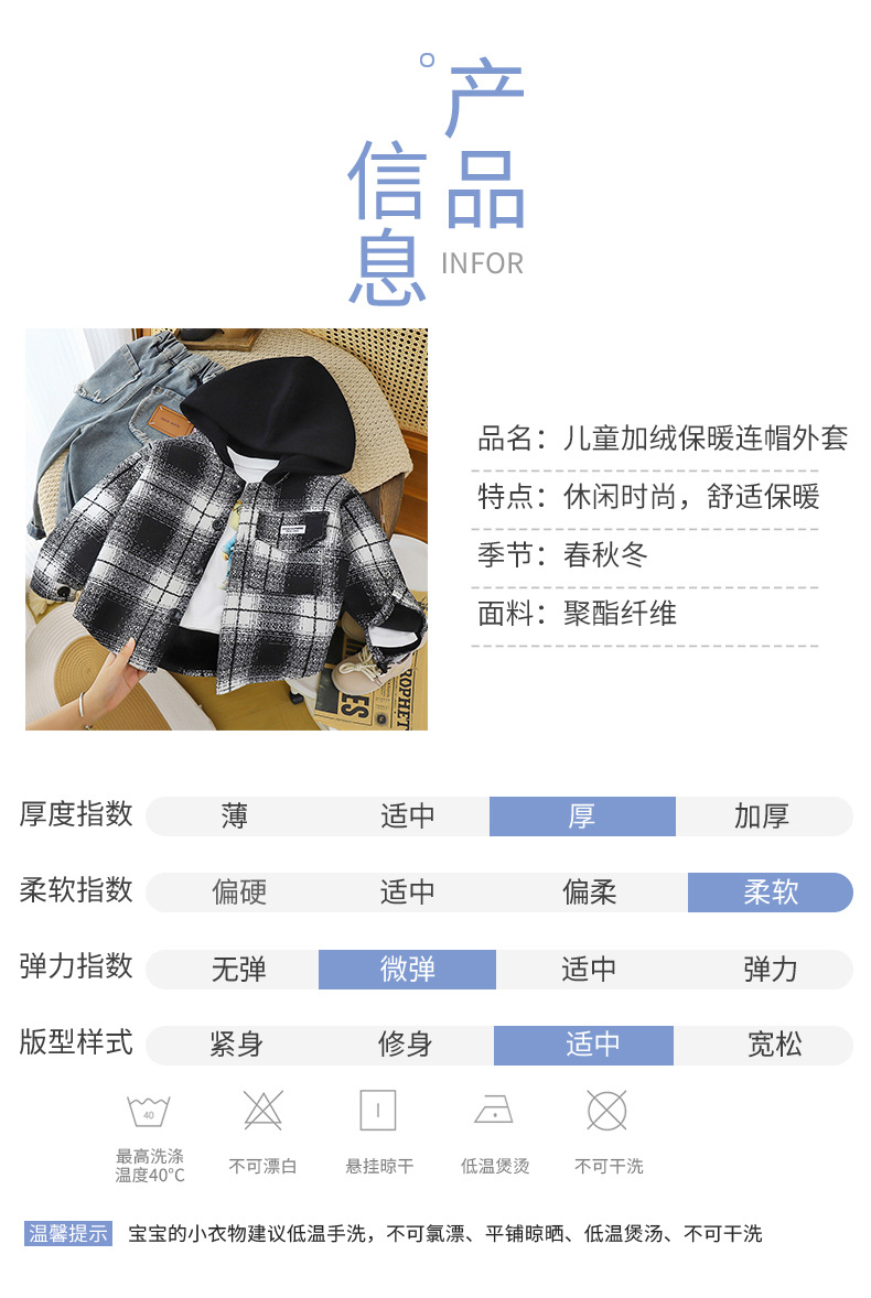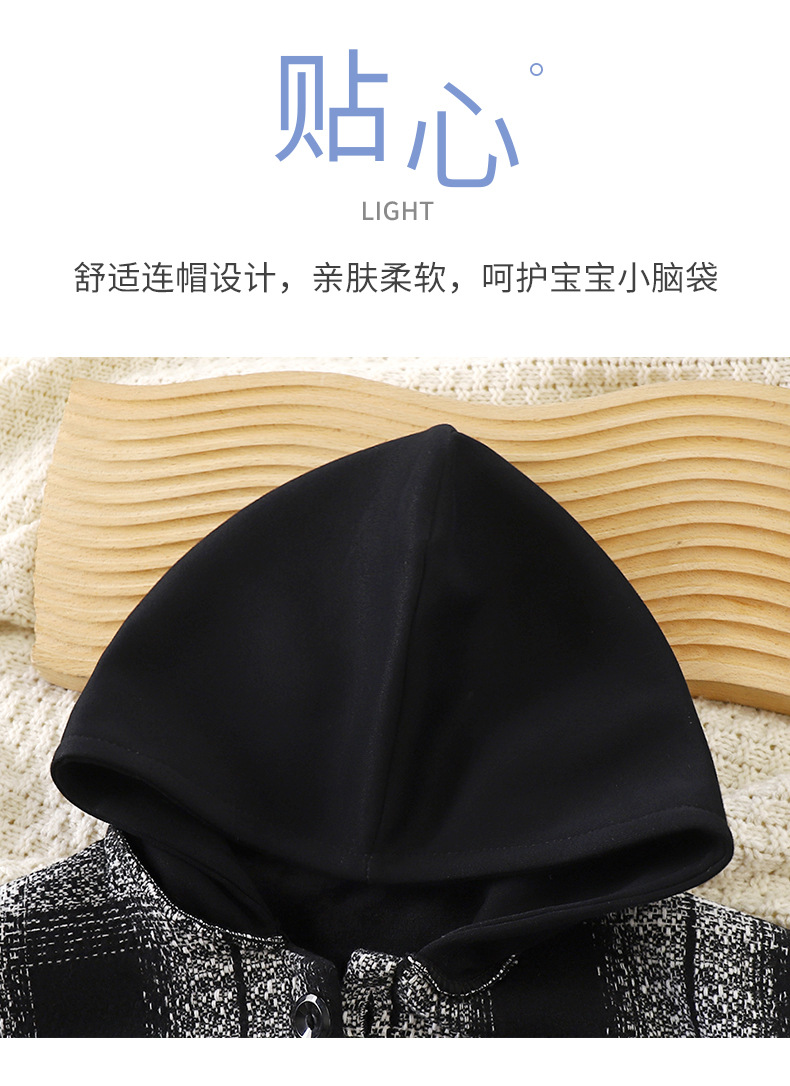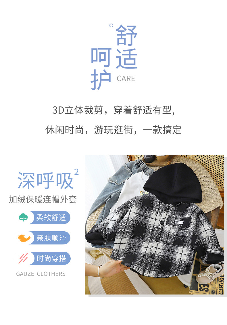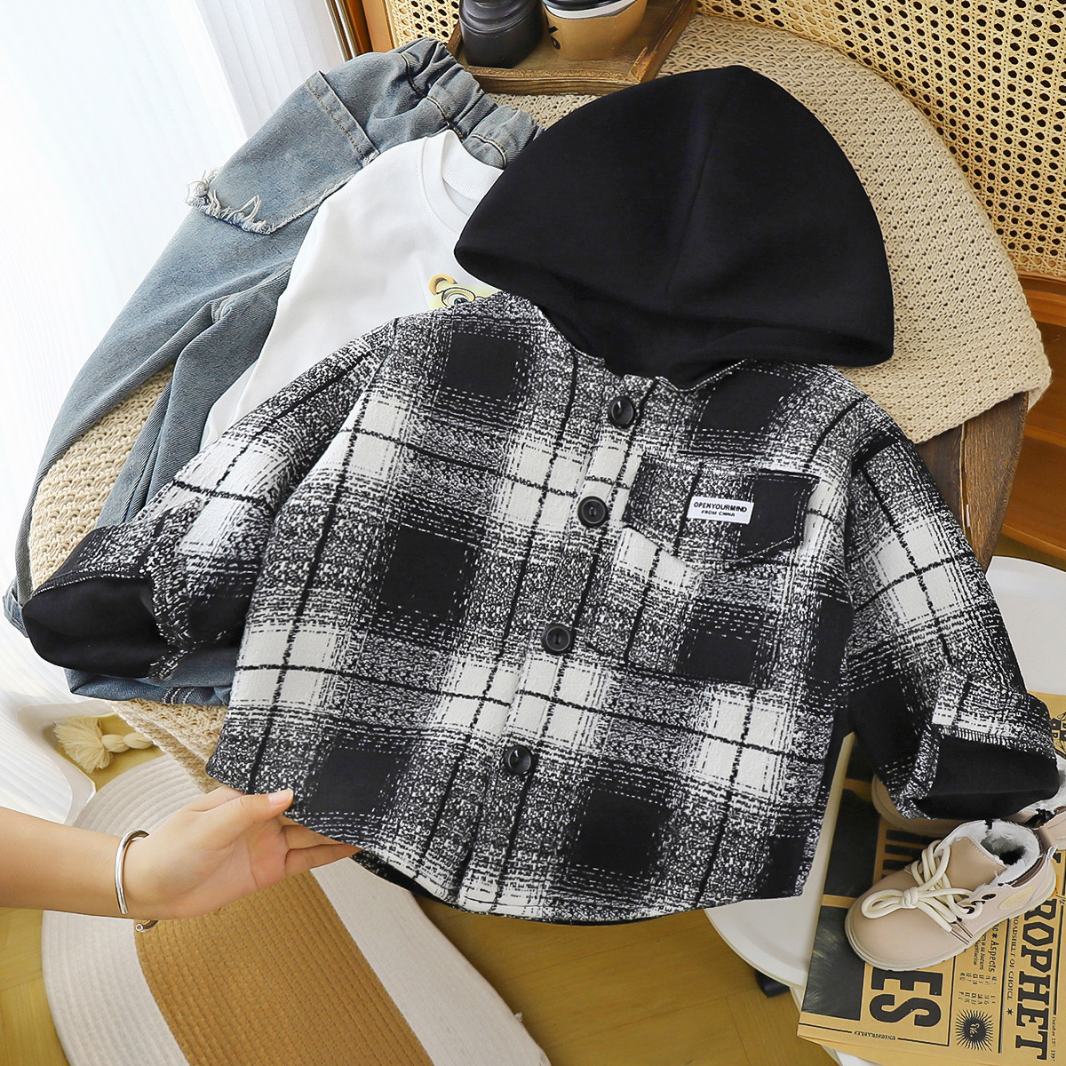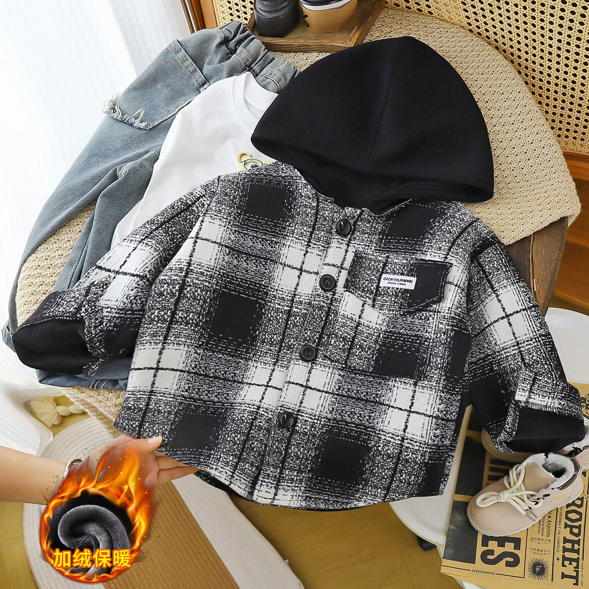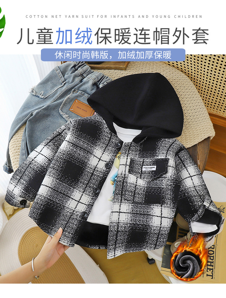 어린이 기모 따뜻한 후드 재킷 소년의 두꺼운 격자 무늬 탑 남자 아기 어린이 유행 착용 코트