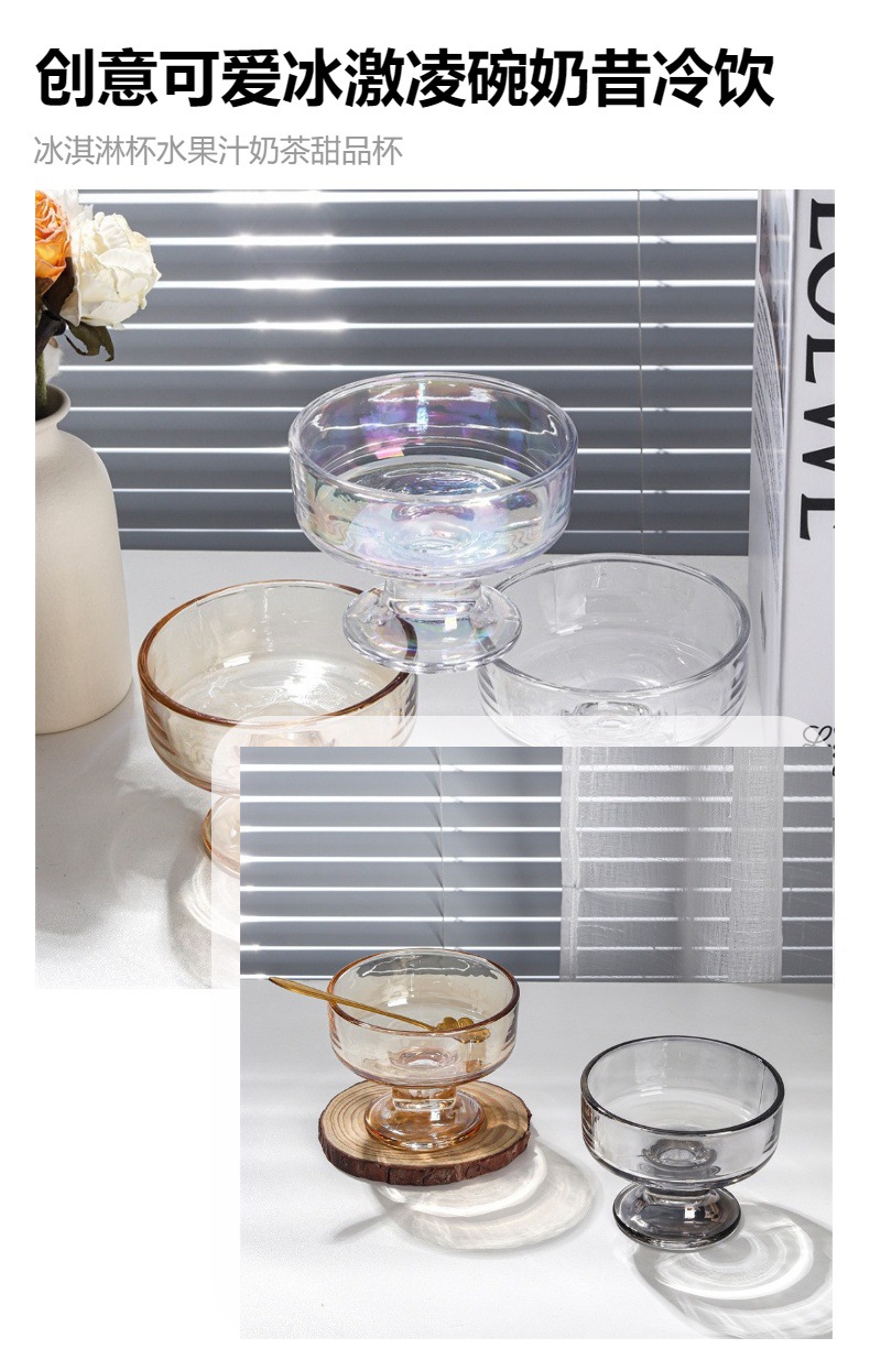 아이스크림 컵 과일 주스 우유 차 디저트 컵 창조적 인 귀여운 아이스크림 그릇 밀크 쉐이크 차가운 음료 유리 그릇 디저트 컵