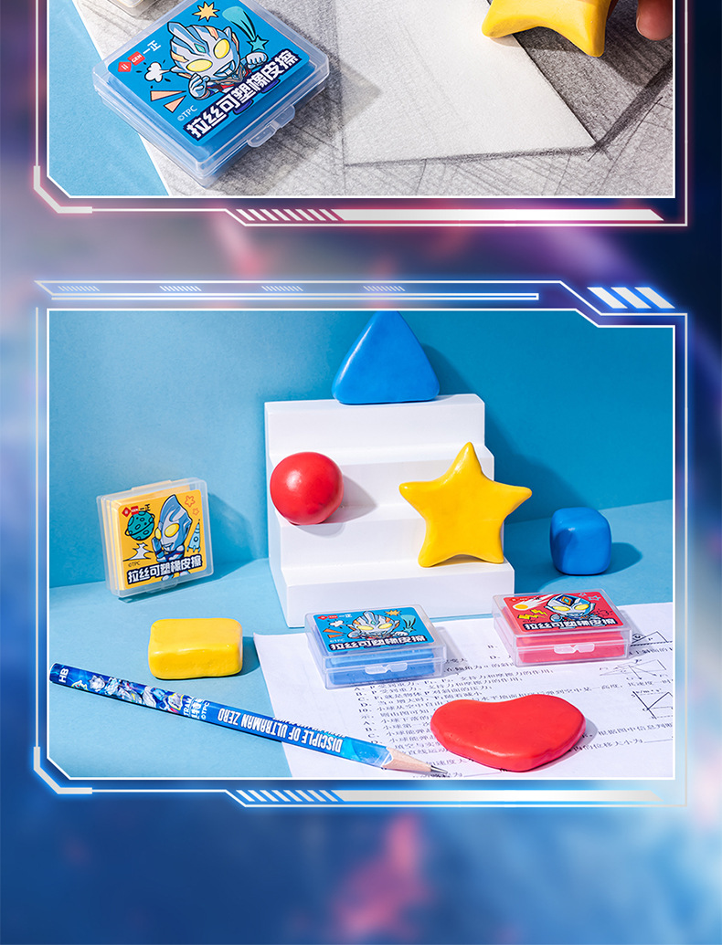 Iigen I 문구 Ultraman 이미지 브러시 플라스틱 지우개 어린이 부드러운 고무 예술 회화 고무