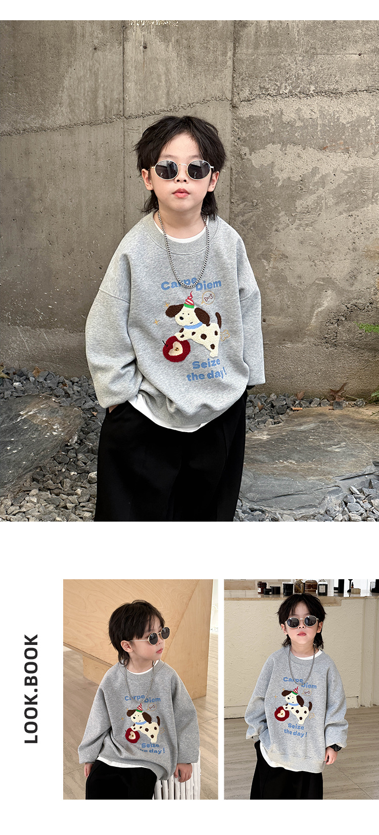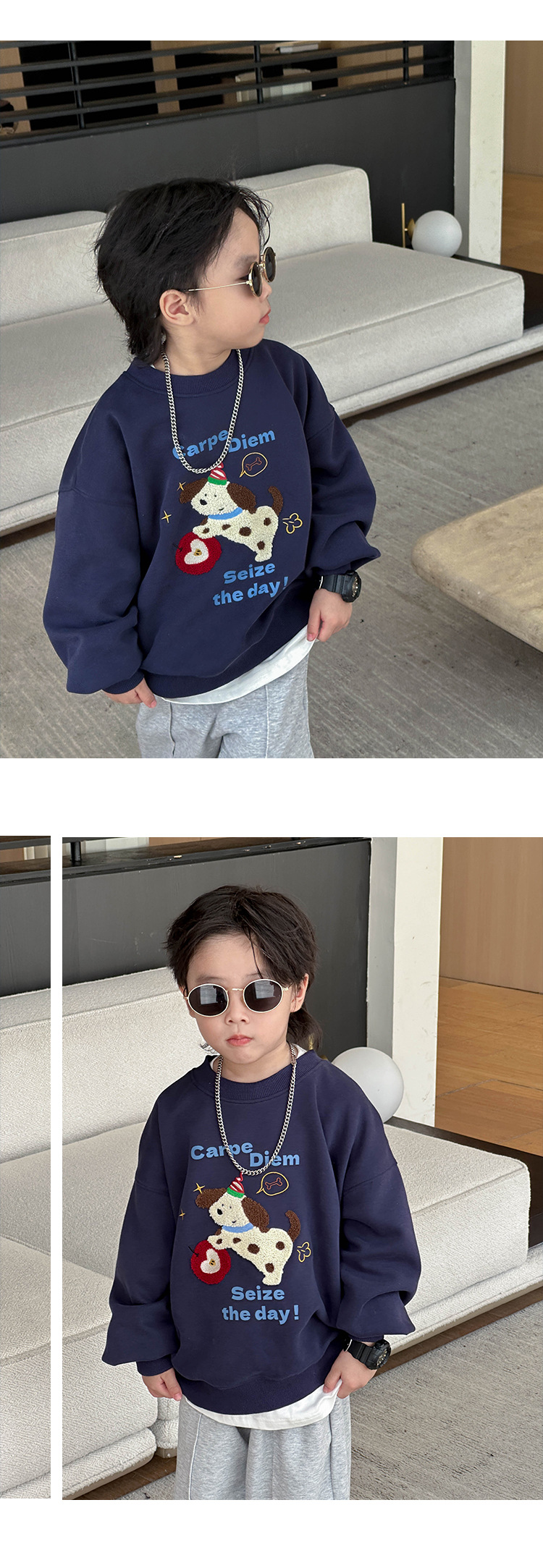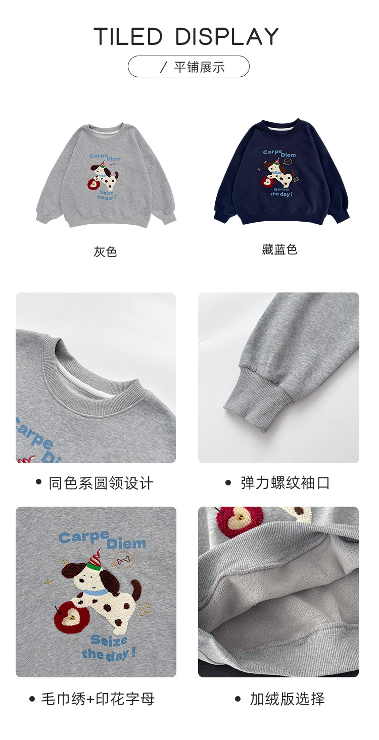 지리 아동복 남아 스웨트셔츠 2025 겨울 신상품 아동 한국 스타일 기모 상의 큰 아이들용 두꺼운 가을 겨울 옷스토어 가기