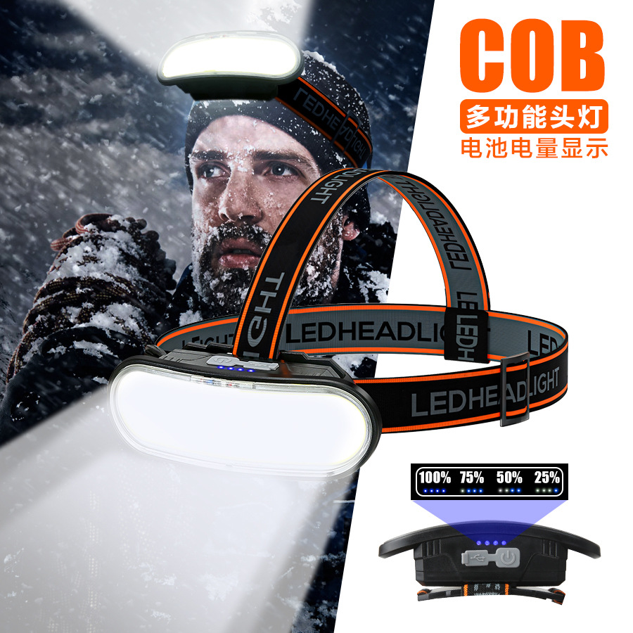 국경 이중 광원 강한 빛 장거리 헤드 장착 손전등 야외 가정 밤 낚시 조명 강한 빛 led 전조등