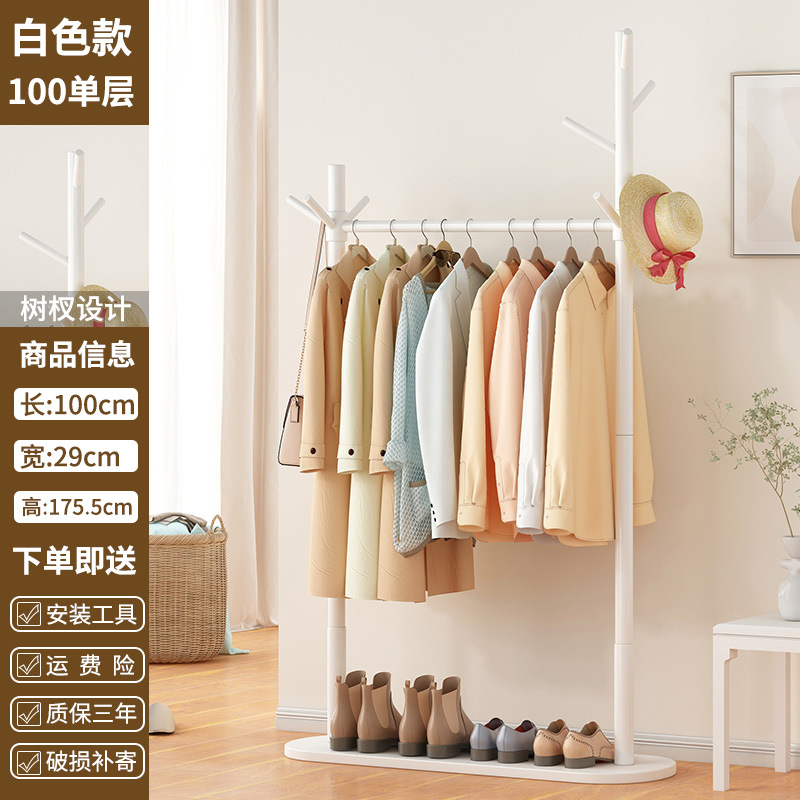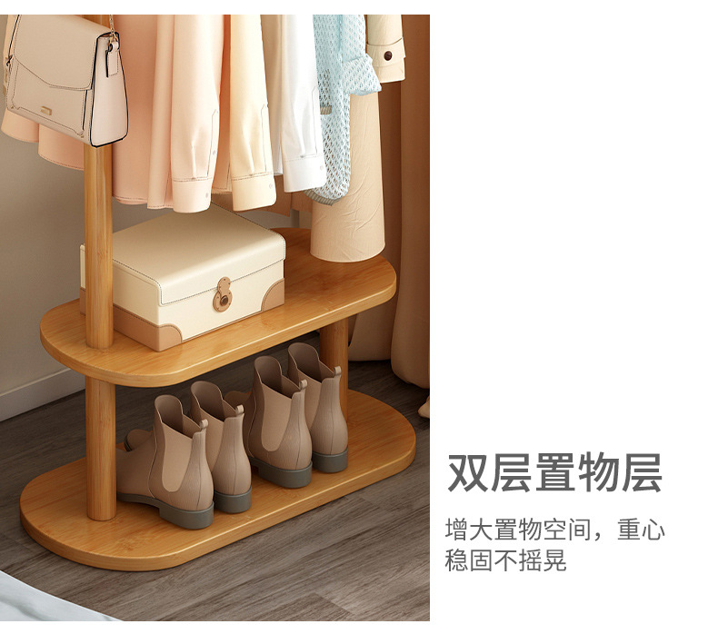 코트 랙 단단한 나무 바닥 침실 걸이 가정용 간단한 작은 아파트 더블 레이어 스토리지 랙 의류 랙