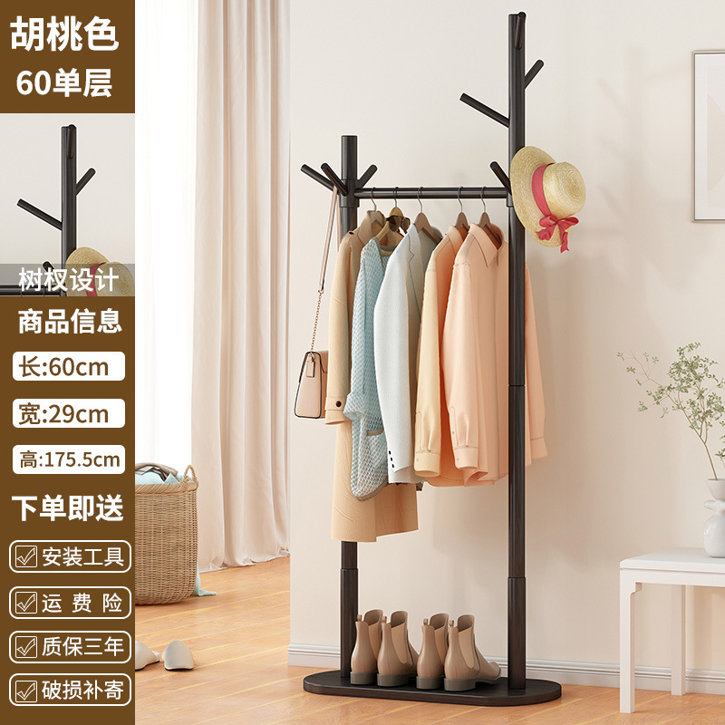 코트 랙 단단한 나무 바닥 침실 걸이 가정용 간단한 작은 아파트 더블 레이어 스토리지 랙 의류 랙스토어 가기