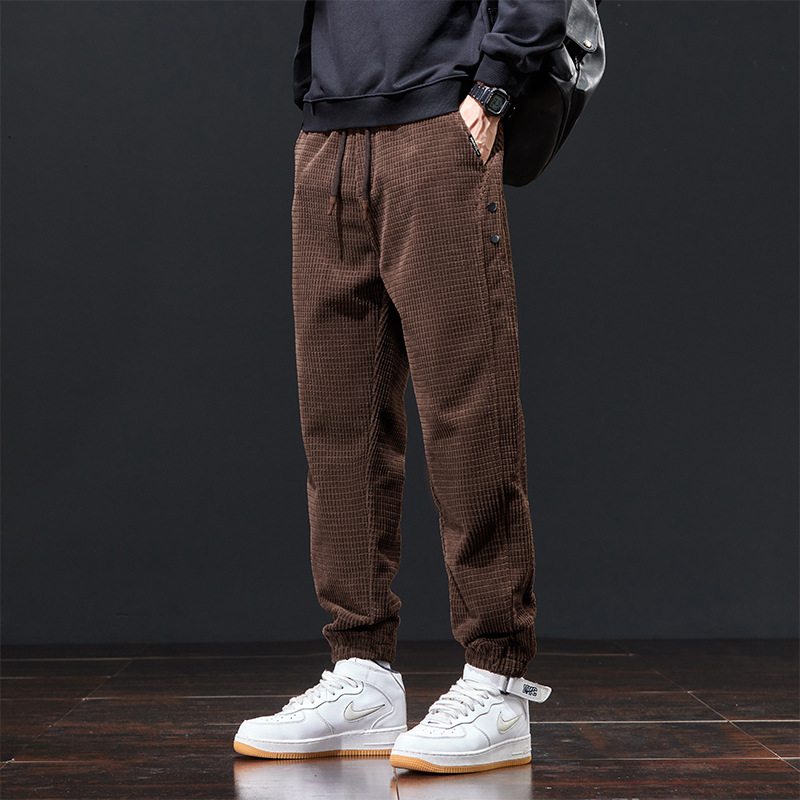 Chenille 캐주얼 바지 남자 2024 가을 및 겨울 새로운 느슨한 Harlan 발 스포츠 코듀로이 가드 바지스토어 가기