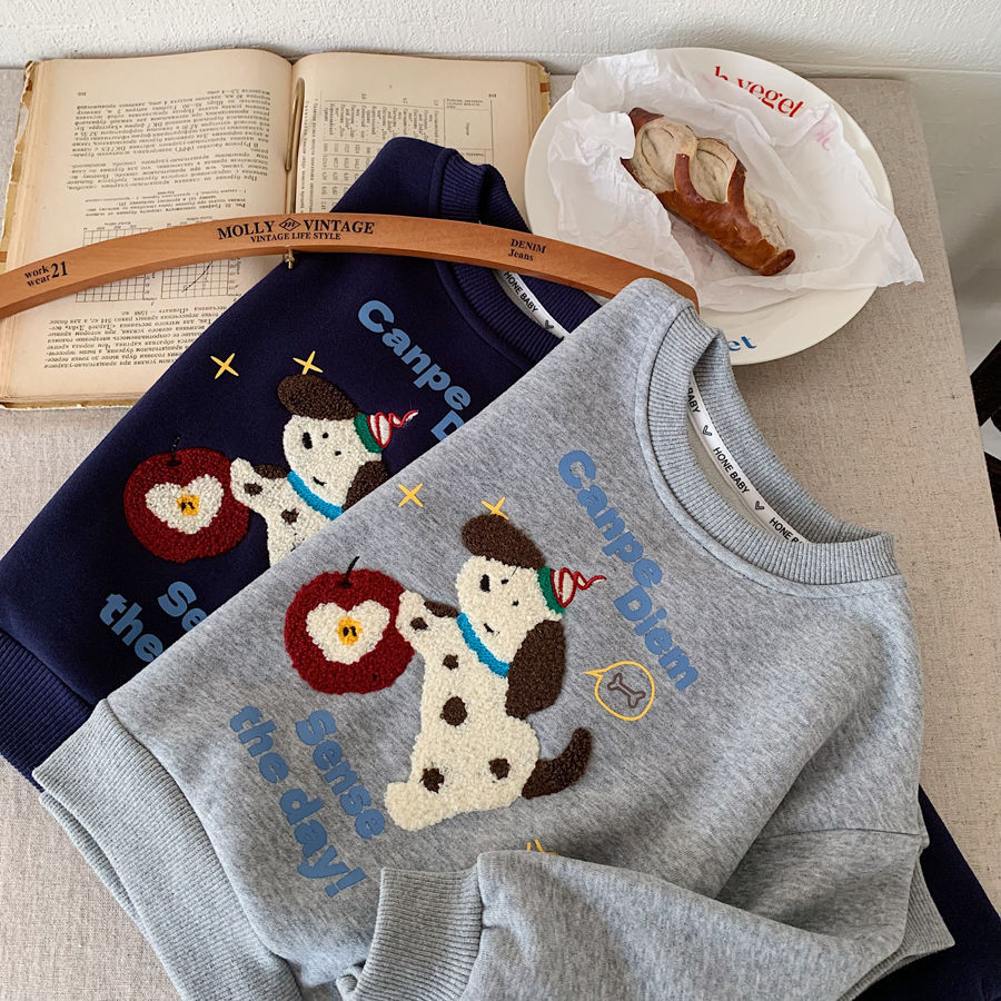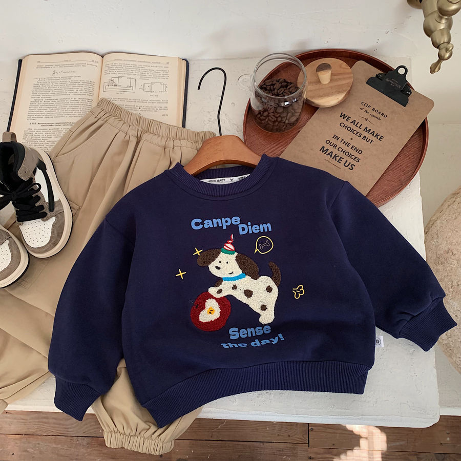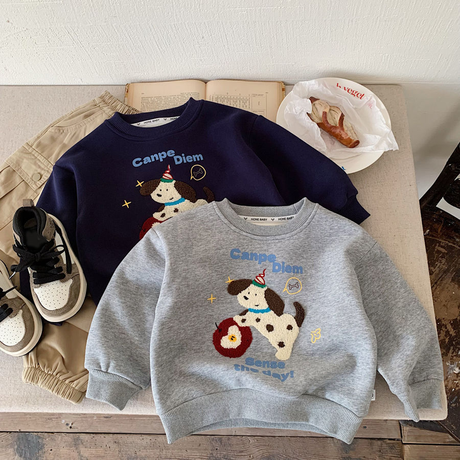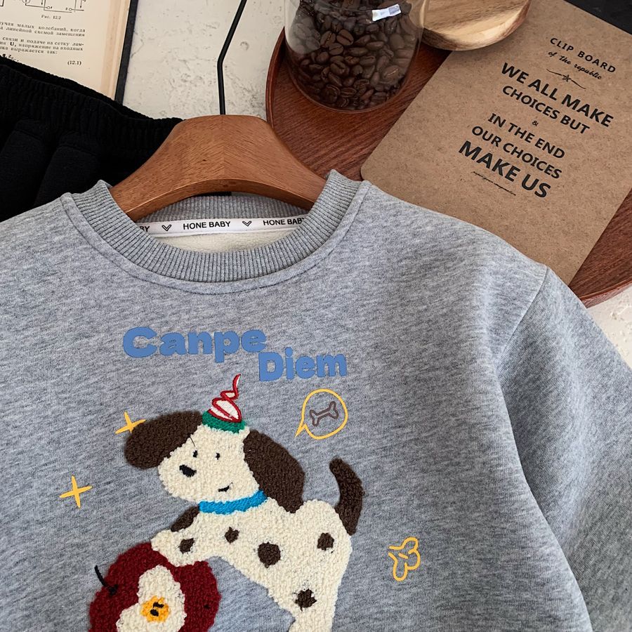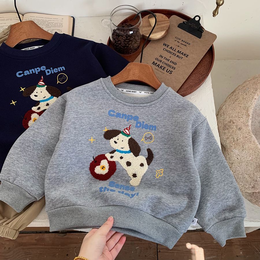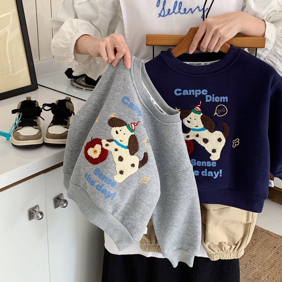 남아용 플리스 스웨트셔츠 2025 겨울 신상 어린이 타월 자수 고급 캐주얼 플리스 귀여운 스웨트셔츠 풀오버스토어 가기