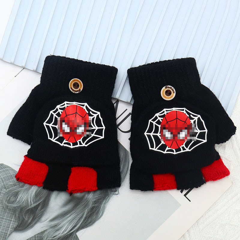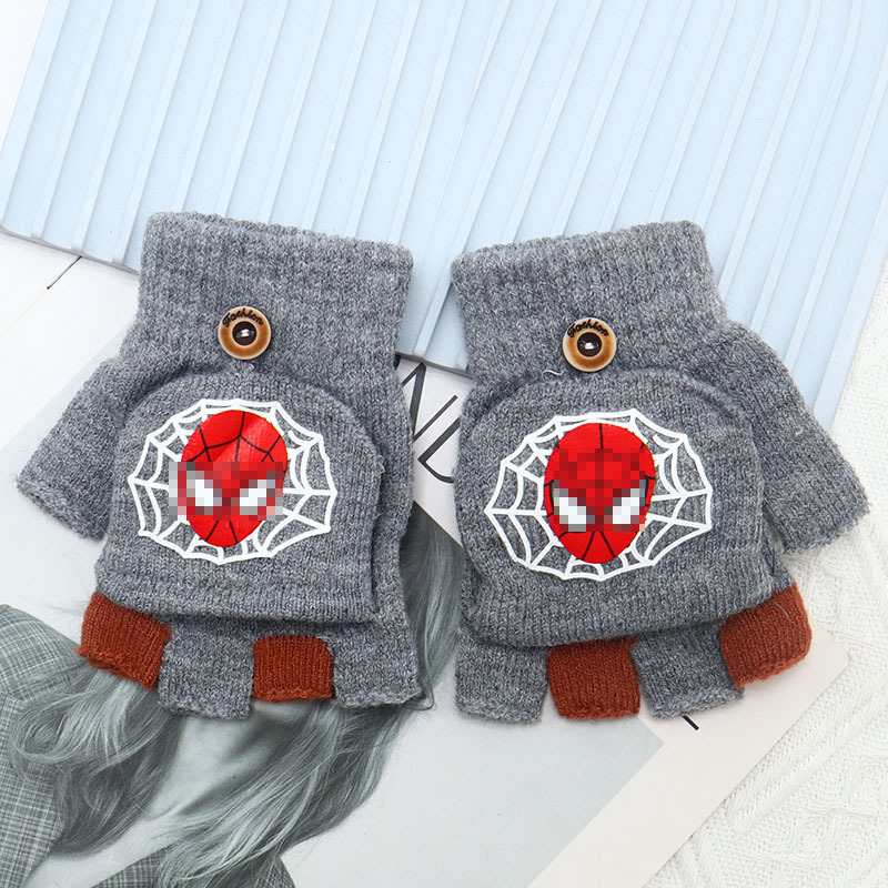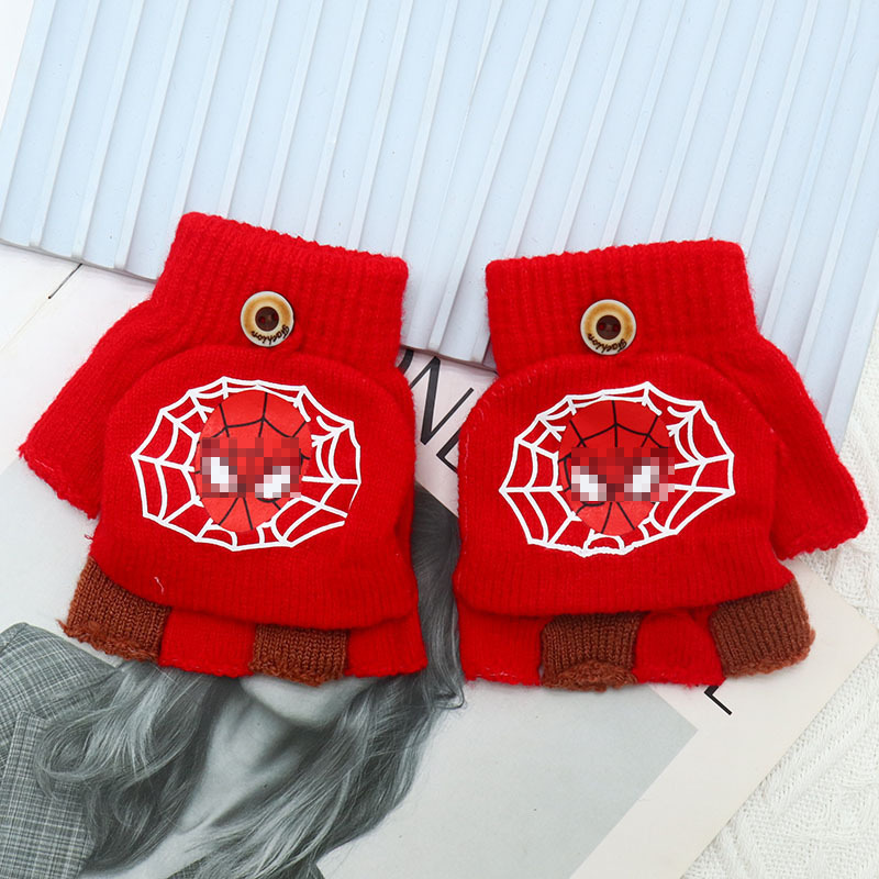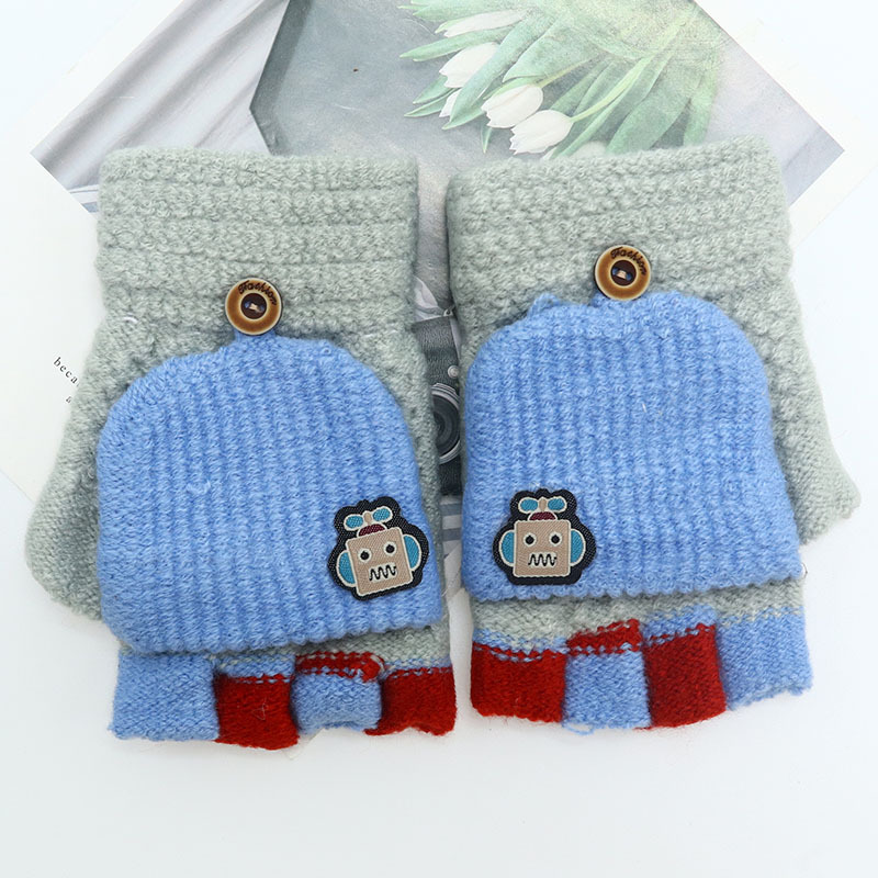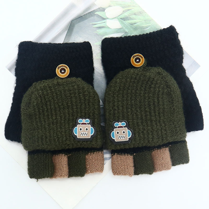 어린이 장갑 만화 귀여운 아기 겨울 따뜻한 초등학교 학생의 반 손가락 두꺼운 유치원 플립 커버 소년 소녀